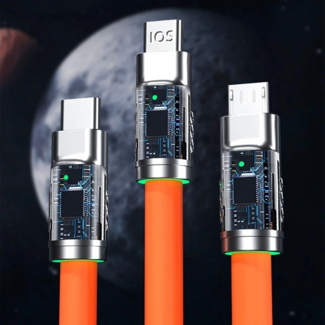 3 Şarj Aleti 1 Arada Çinko Alaşım Hızlı Şarj Kablosu Turuncu