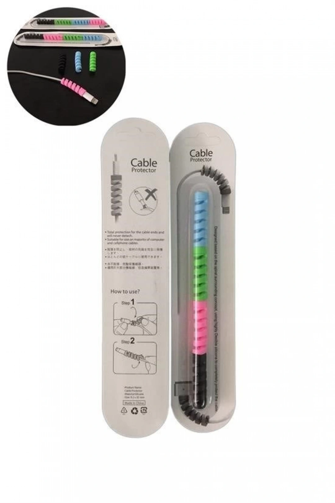 Şarj aleti kablo koruyucu spiral oldukça esnek bir maddeden üretilmiştir Spiral kablo ucu koruyucu ile tellerin ve güç kablolarının birbirine karışması engellenir