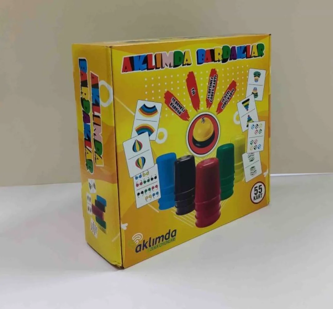 Aklımda Bardaklar oyununda amaç oyun kutusunda mevcut olan kartlarda yer alan görevi en hızlı şekilde yapmaya çalışmaktır. Oyun içeriği 30 adet bardak (beş farklı renkte, toplam 6 set), 55 resimli görev kartı ve 1 adet zilden oluşmaktadır. İyi eğlenceler…