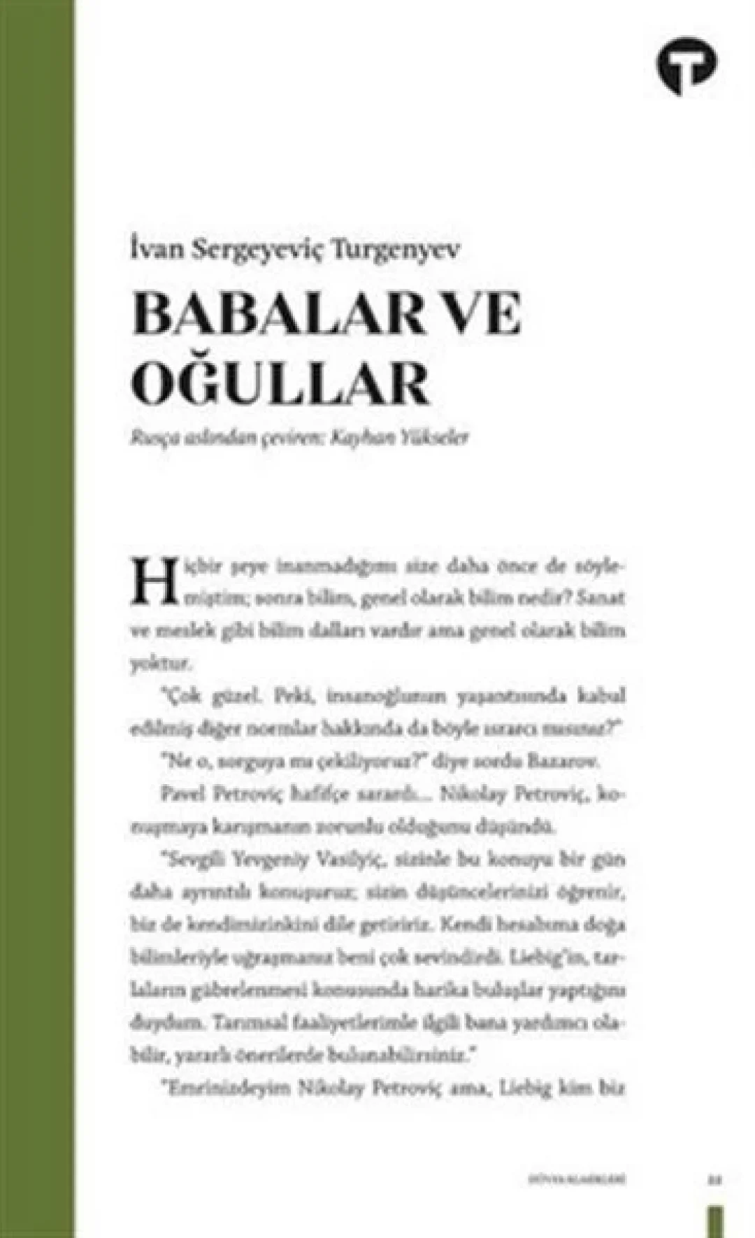 Babalar ve Oğullar, bir itiraz ve sorgulama alanına dönüşür. Turgenyev’in o dönem okuyucusuna vurduğu darbenin kuvveti bugün bile hissedilmekte.