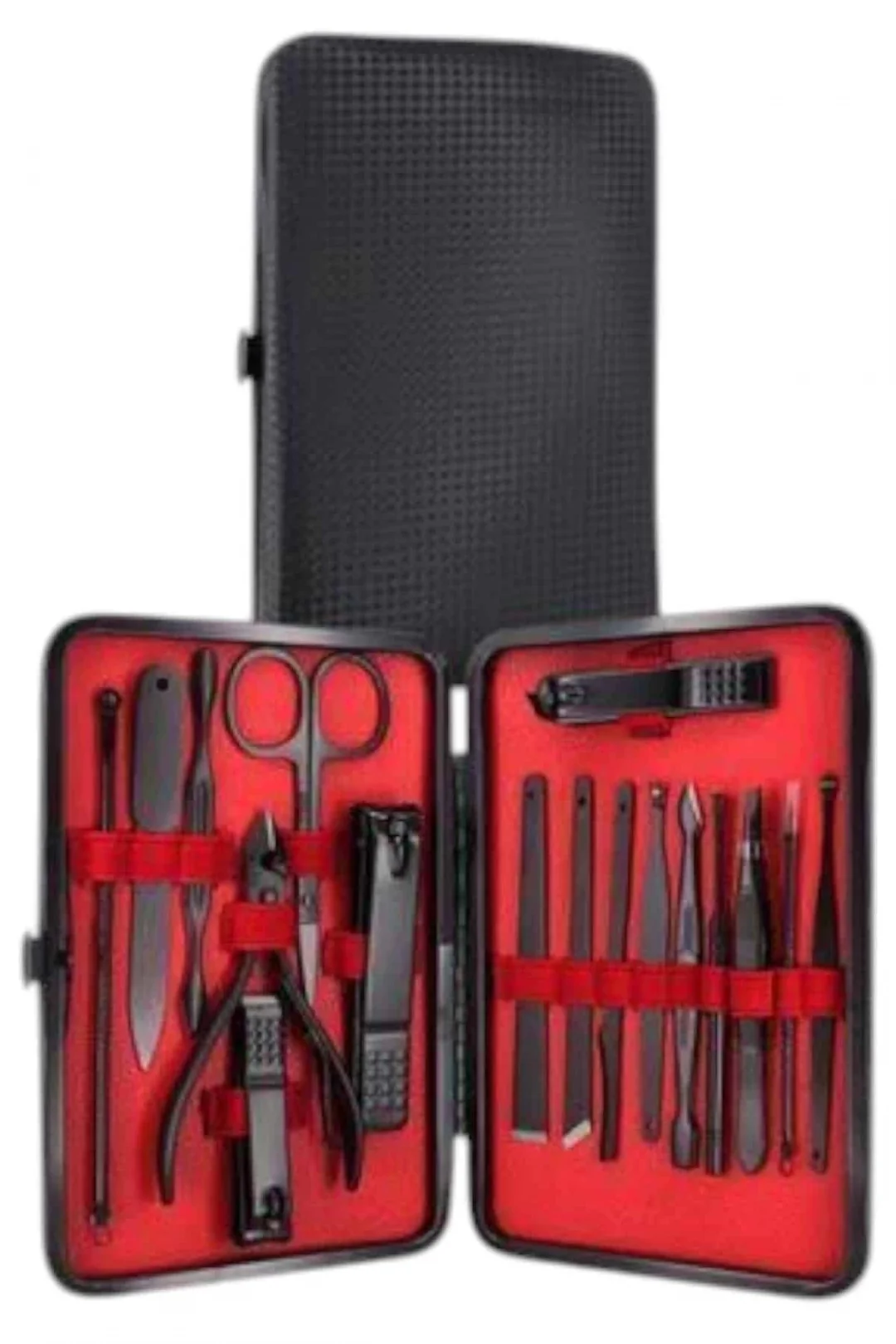 Özel tasarımıyla dikkat çeken bu 17 parçalık manikür seti, el ve ayak bakımınızı profesyonelce yapmanız için tüm gerekli malzemeleri bir araya getiriyor. Paslanmaz çelikten üretilmiş dayanıklı ve uzun ömürlü parçaları sayesinde güvenli sterilizasyon sağlar, kolay temizlenir ve korozyonu önleyerek hijyenik bir kullanım sunar. Yeni nesil siyah kaymaz parlatma teknolojisi ile üretilmiş keskin ve ergonomik tasarımı, kullanım kolaylığı ve estetik görünümü bir araya getirir.Şık ve sağlam deri kaplama kutusu sayesinde düzenli bir şekilde saklanabilir ve tek düğmeyle kolayca açılıp kapanabilir. Hafif ve taşınabilir yapısıyla çantanızda rahatça taşıyabilir, günlük kullanım veya seyahatlerinizde yanınızda bulundurabilirsiniz. Setin içeriğinde büyük, küçük ve sivri uçlu tırnak makasları, çift uçlu komedon, törpü, et ittirici, çift taraflı tırnak kaldırma aleti, makas, pedikür bıçakları, V şeklinde et itme aparatı, tırnak temizleme çubuğu, cımbız, iğneli komedon ve kulak temizleme aparatı bulunmaktadır.Her detayı düşünülerek tasarlanmış bu manikür seti, hem kendi bakımınızı pratik şekilde yapmanızı sağlar hem de sevdiklerinize hediye edebileceğiniz şık ve kullanışlı bir alternatif sunar.