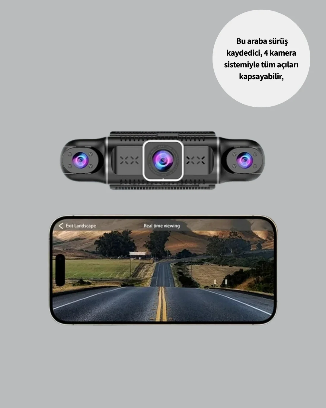 Bu 4 kameralı araç kayıt sistemi, tam kapsamlı bir güvenlik çözümü sunar. Öndeki geniş açılı kamera, arkadaki detaylı kamera ve iki yan kamera sayesinde araç çevresinin 360°’lik kısmı görüntülenir. Bu özellik, özellikle park halinde veya dar alanlarda büyük avantaj sağlar.1080P Full HD çözünürlük, tüm detayları net bir şekilde kaydeder. Yol üzerindeki tüm unsurlar keskin ve anlaşılır bir şekilde görüntülenir. Gece görüş teknolojisi, karanlıkta bile yüksek performans sunarak güvenliği artırır.GPS fonksiyonu, aracın konumunu ve hızını kaydederek videoya entegre eder. Bu özellik, ticari araçlar, filo yönetimi ve uzun yol şoförleri için büyük kolaylıktır.WiFi özelliği, kamerayı akıllı telefonlarla eşleştirmenize olanak tanır. Uygulama üzerinden videoları izleyebilir ve indirebilirsiniz. Kablosuz kullanım kolaylığı, cihazın pratikliğini artırır.Hareket algılama özelliği, araç park halindeyken çevredeki hareketleri tespit ederek kayıt başlatır. G sensörü, ani sarsıntılarda kaydı kilitleyerek silinmesini engeller. Döngü kayıt teknolojisi, depolama alanını yöneterek kesintisiz kayıt sağlar.Kompakt yapısı ve kolay montajı sayesinde her araç modeline uyum sağlar. Hem özel araç hem ticari kullanım için uygundur.