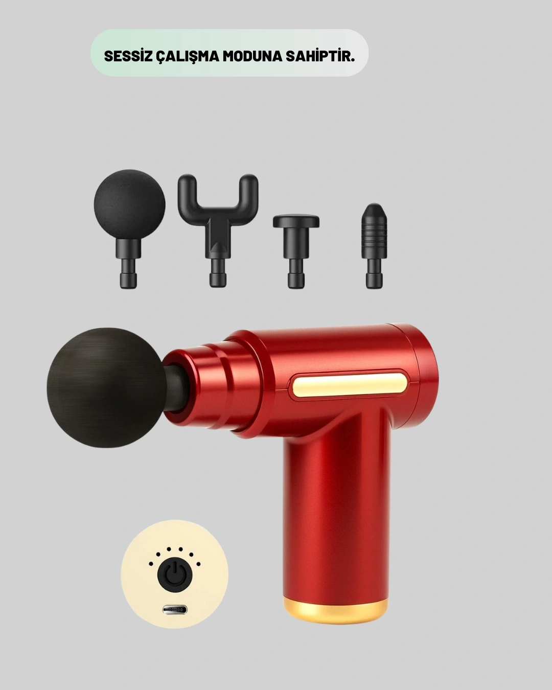 Titreşimli kas masaj tabancası, kaslarda oluşan gerginliği azaltmak ve rahatlama hissini artırmak amacıyla geliştirilmiştir. Vücudun farklı bölgelerinde kullanılabilen çok yönlü yapısı sayesinde geniş bir kullanım alanı sunar. Ergonomik tasarımı, cihazın elde güvenli ve rahat bir şekilde tutulmasını sağlar.6 farklı hız ayarı, masaj yoğunluğunu kişisel tercihlere göre ayarlamaya imkân tanır. Düşük hızlar rahatlatıcı bir masaj sunarken, yüksek hızlar daha güçlü titreşimlerle kaslara etki eder. Sessiz çalışma modu, ürünü her ortamda kullanıma uygun hale getirir.4 farklı masaj başlığı ile donatılan cihaz, kas gruplarına özel masaj imkânı sunar. Yuvarlak başlık geniş alanlara uygulanır. U başlık omurga çevresinde kontrollü kullanım sağlar. Düz başlık büyük kas gruplarında tercih edilir. Nokta başlık ise derin doku masajı yaparak yoğun rahatlama sağlar.Şarj edilebilir pil özelliği sayesinde pratik ve taşınabilir bir kullanım sunar. Hafif yapısı, uzun süreli kullanımda bile konfor sağlar. Düzenli kullanımda kasların gevşemesine, spor sonrası toparlanmaya ve günlük rahatlamaya destek olur. Evde veya spor salonunda kullanım için ideal olan bu masaj tabancası, kas bakım rutinini tamamlayan etkili bir yardımcıdır.