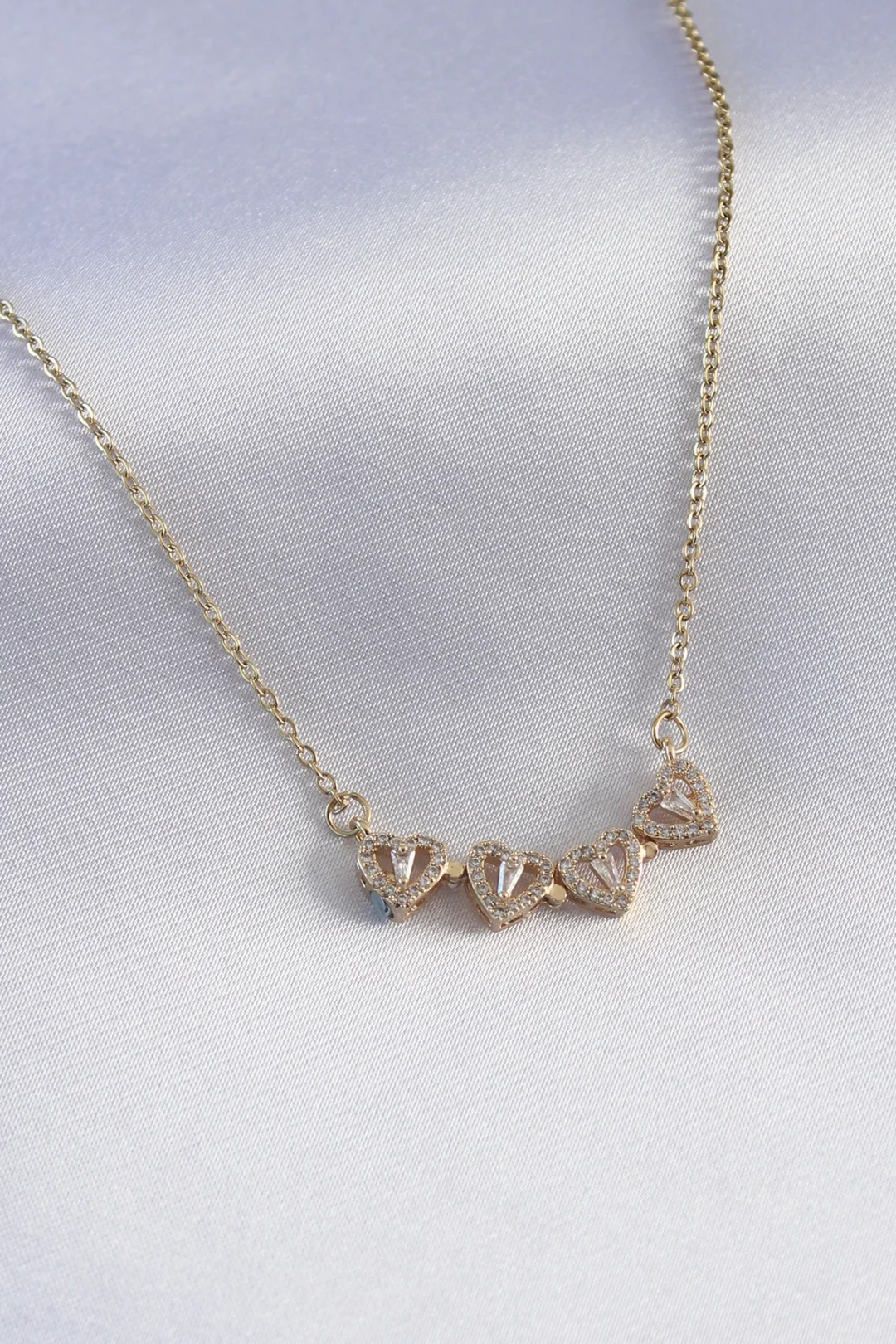 Mey İthalat® Kalp Detaylı Gold Renk Pirinç Kadın Kolye