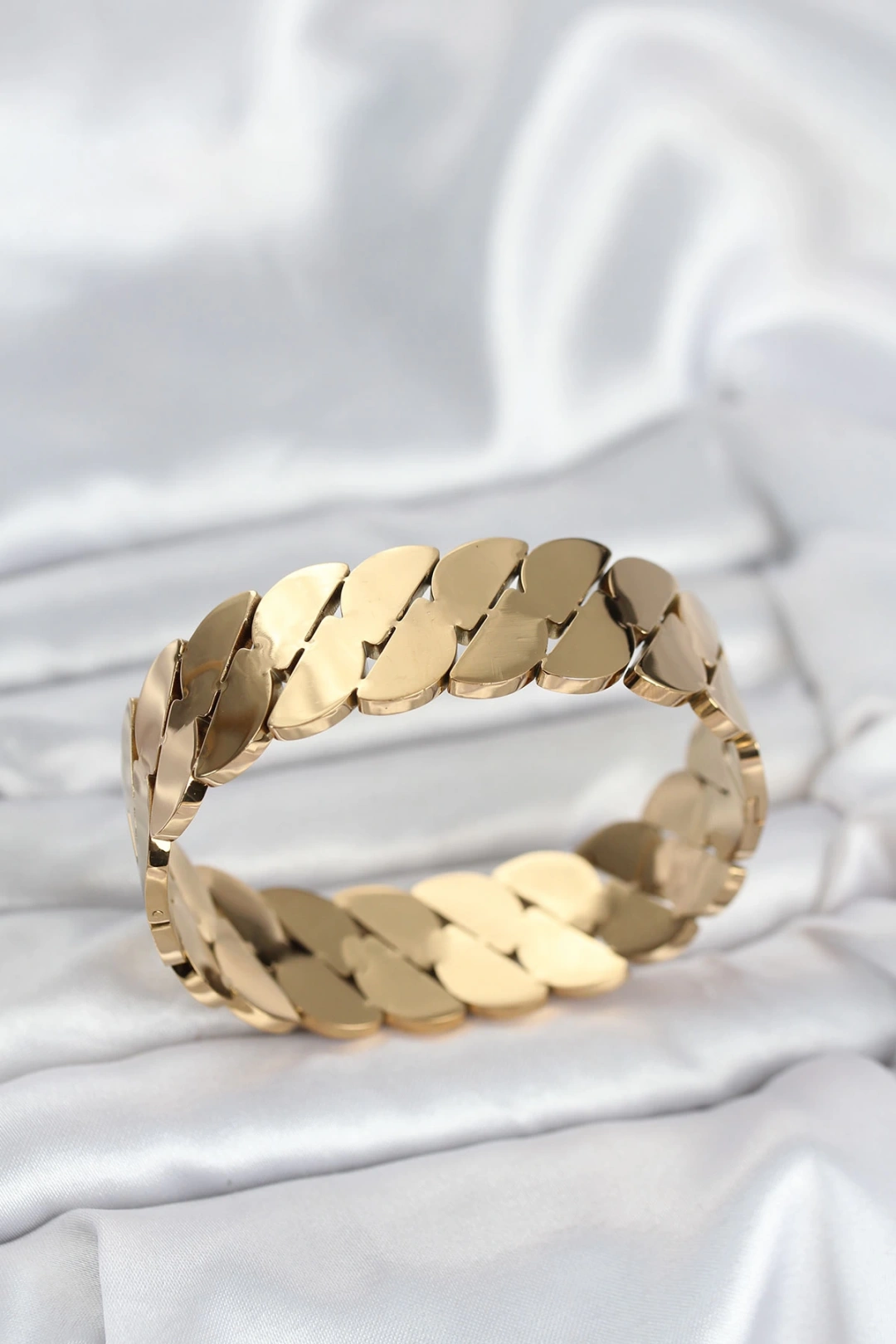 BFS 316L Çelik Gold Renk Ezme Zincir Model Kadın Kelepçe Bileklik