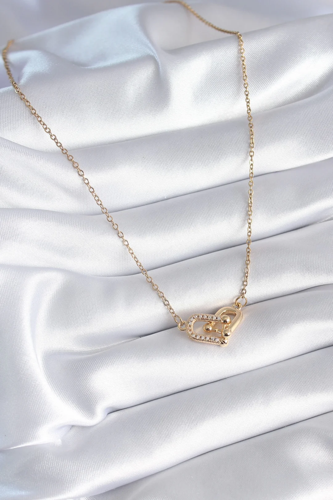 Mey İthalat® 316L Çelik Gold Renk Zirkon Taşlı Model Kadın Kolye