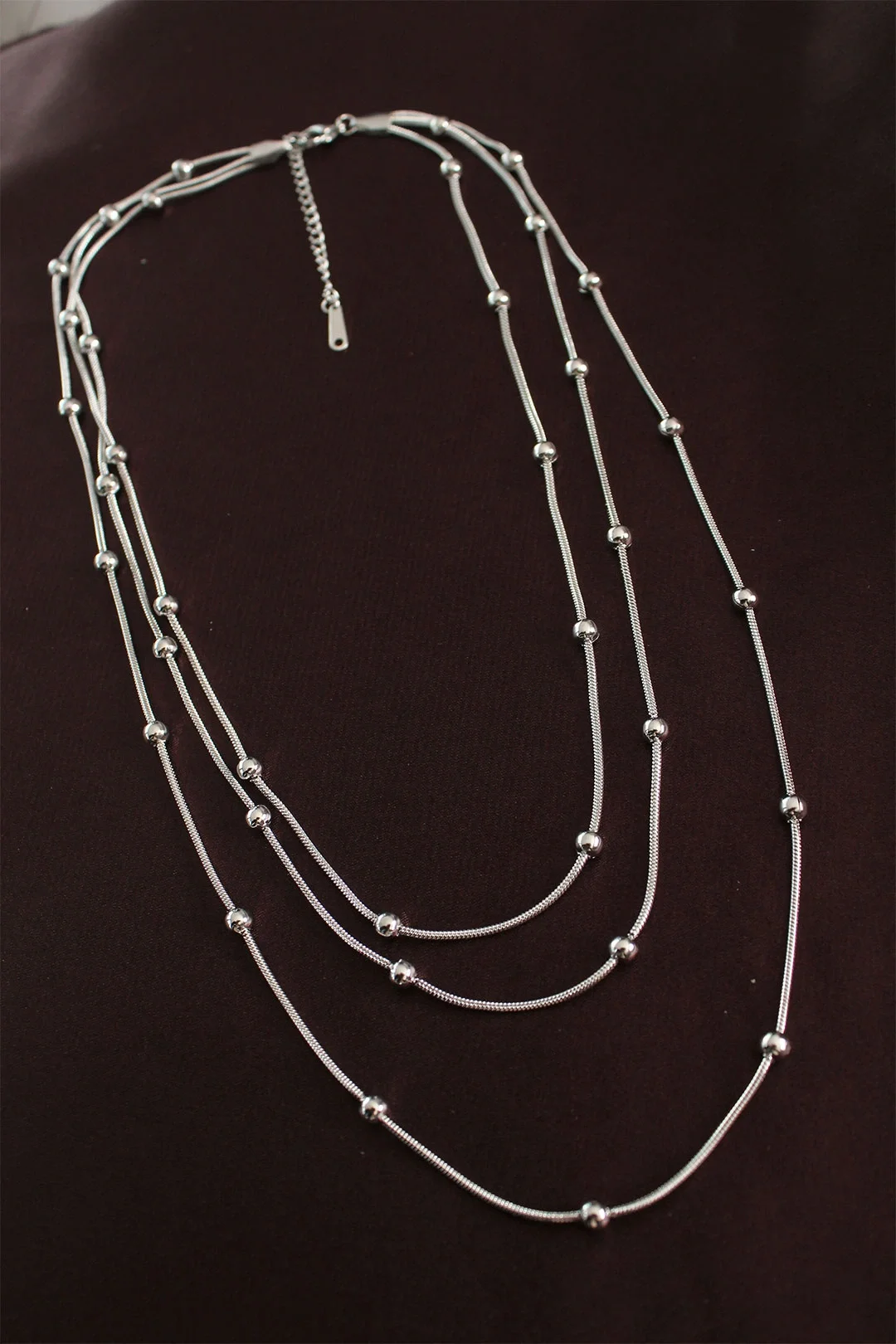 Mey İthalat® 316L Çelik Gümüş Renk Minimal Topçuk Model Çoklu Kolye