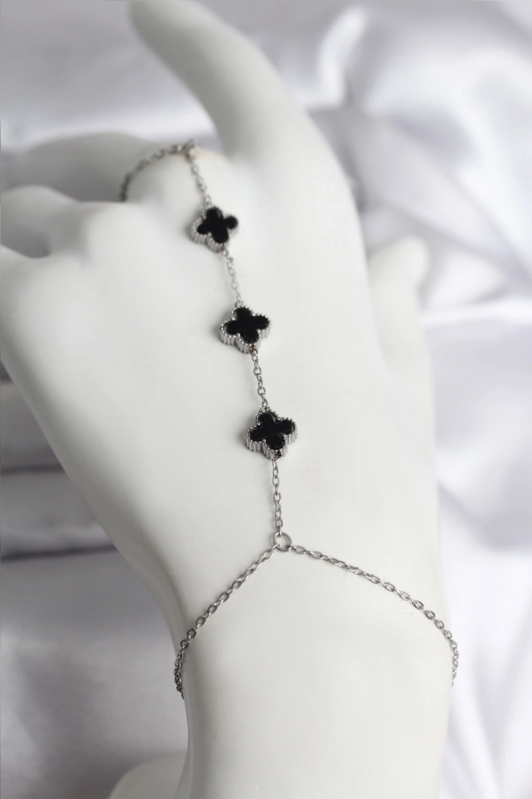 BFS 316L Çelik Gümüş Renk Siyah Yonca Model Kadın Şahmeran