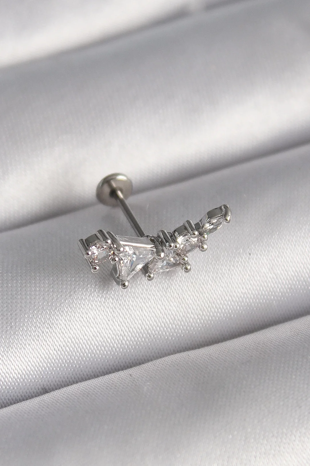 Mey İthalat® 316L Çelik Gümüş Renk Dal Model Zirkon Taş Detaylı Tragus Piercing