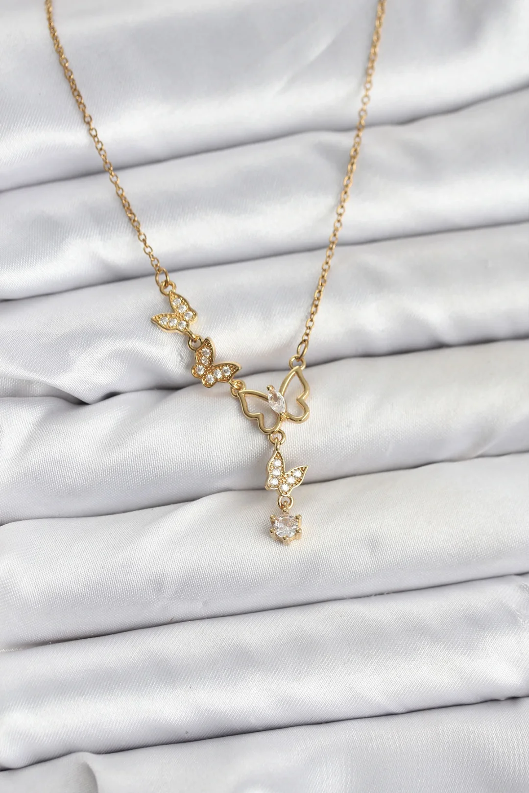 Mey İthalat® 316L Çelik Zincir Gold Renk Kelebek Model Kadın Kolye