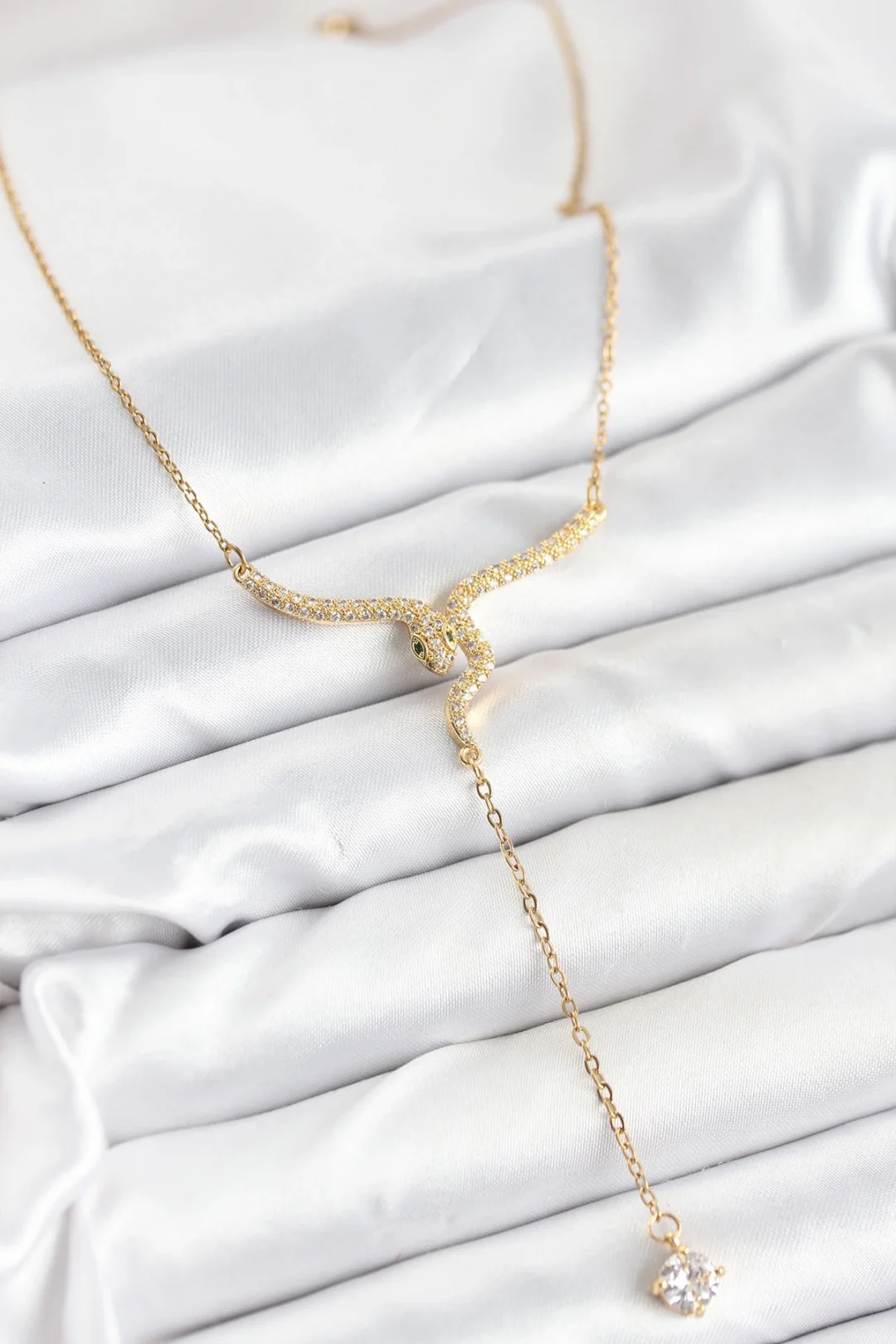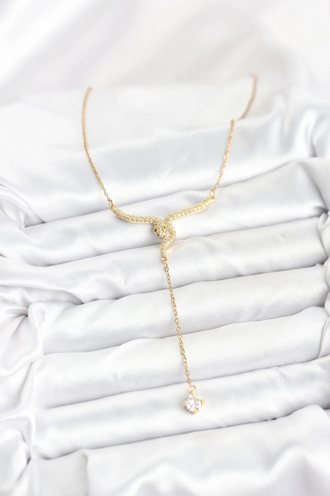 Mey İthalat® 316L Çelik Zincir Gold Renk Yılan Model Y Kolye