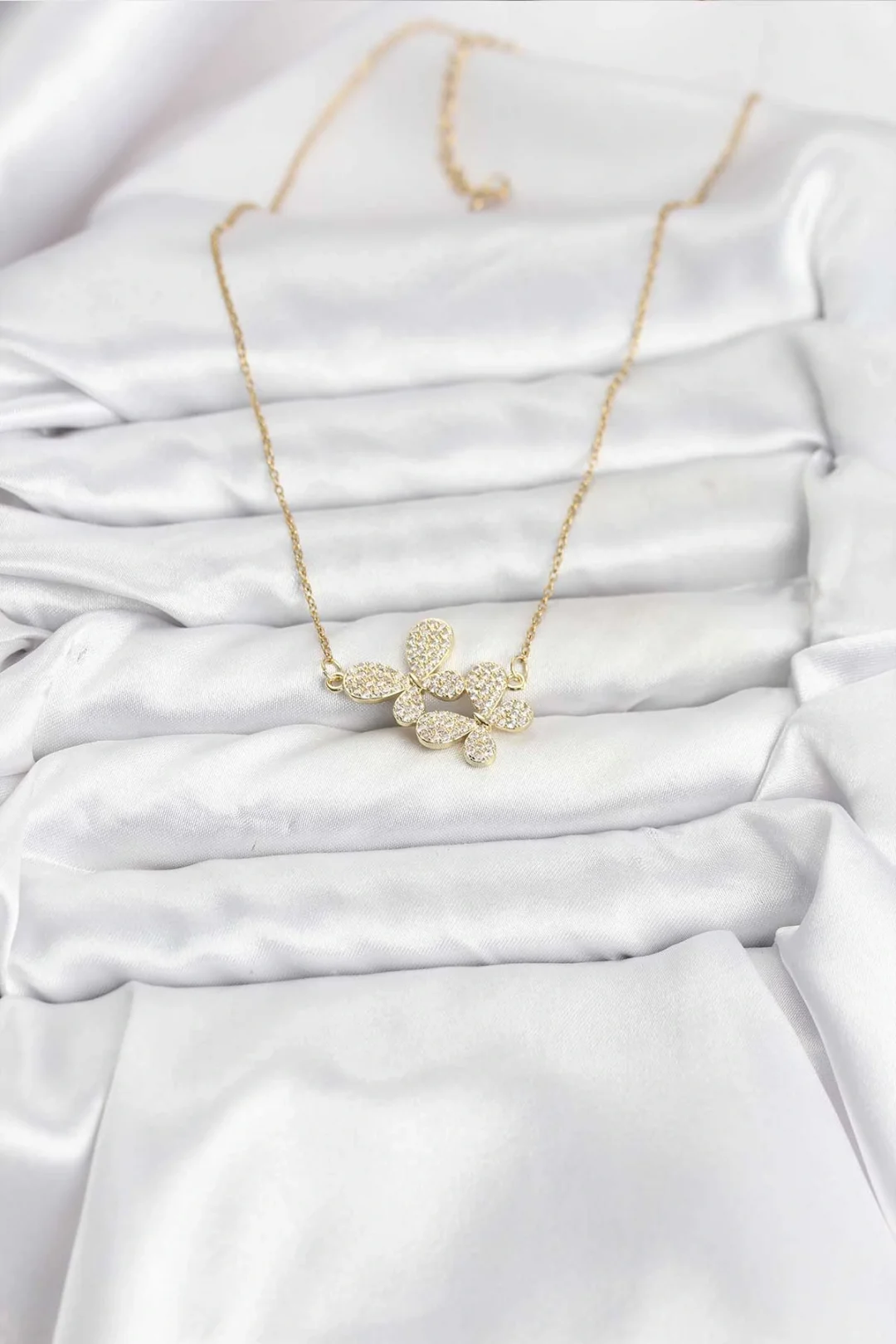 Mey İthalat® 316L Çelik Zincir Gold Renk Zirkon Taşlı Kelebek Model Kadın Kolye