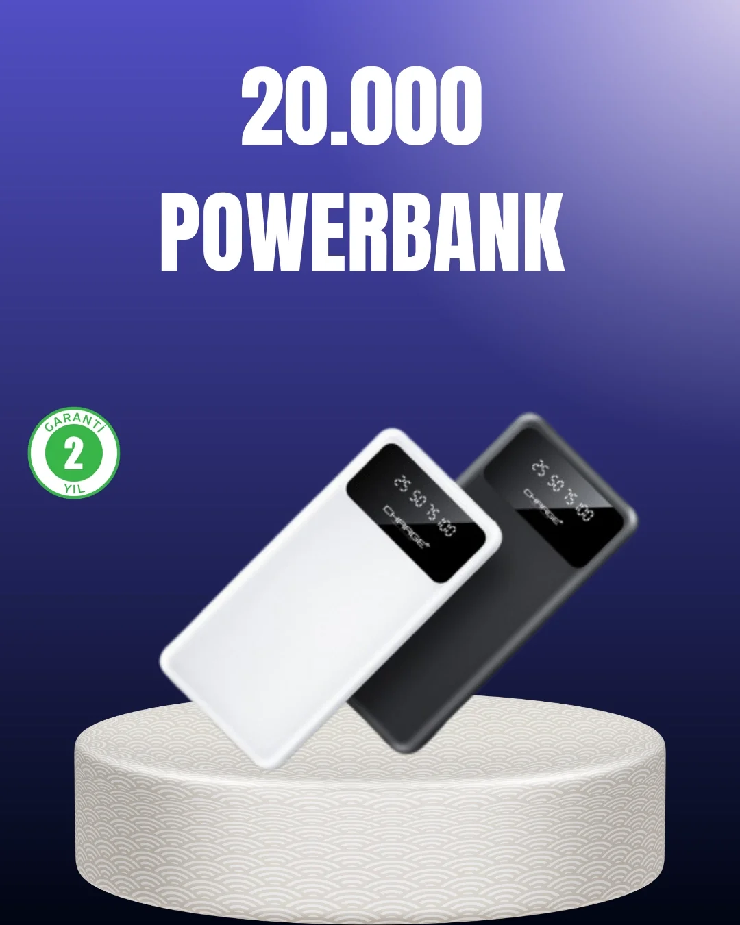 LCD ekranlı 20.000mAh PD Powerbank, kalan şarj seviyesini yüzde olarak göstererek kullanım kolaylığı sağlar. Çift USB çıkışı ve dahili kabloları ile aynı anda birden fazla cihazı hızlıca şarj edebilirsiniz.