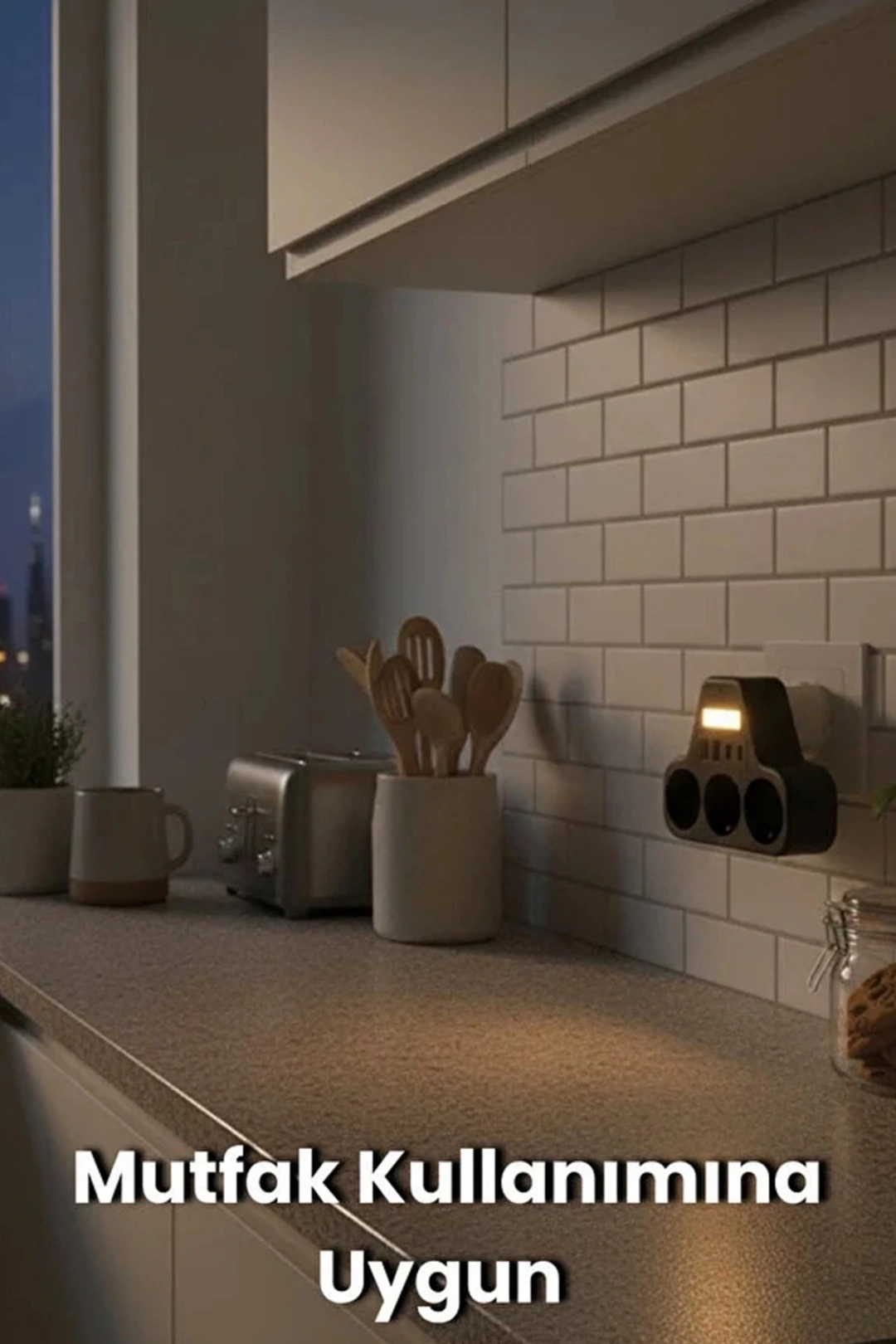 Akım Korumalı Priz Gece Lambalı 3'LÜ Priz 2XUSB 2XType-C Çıkışlı Grup Priz Çoğaltıcı