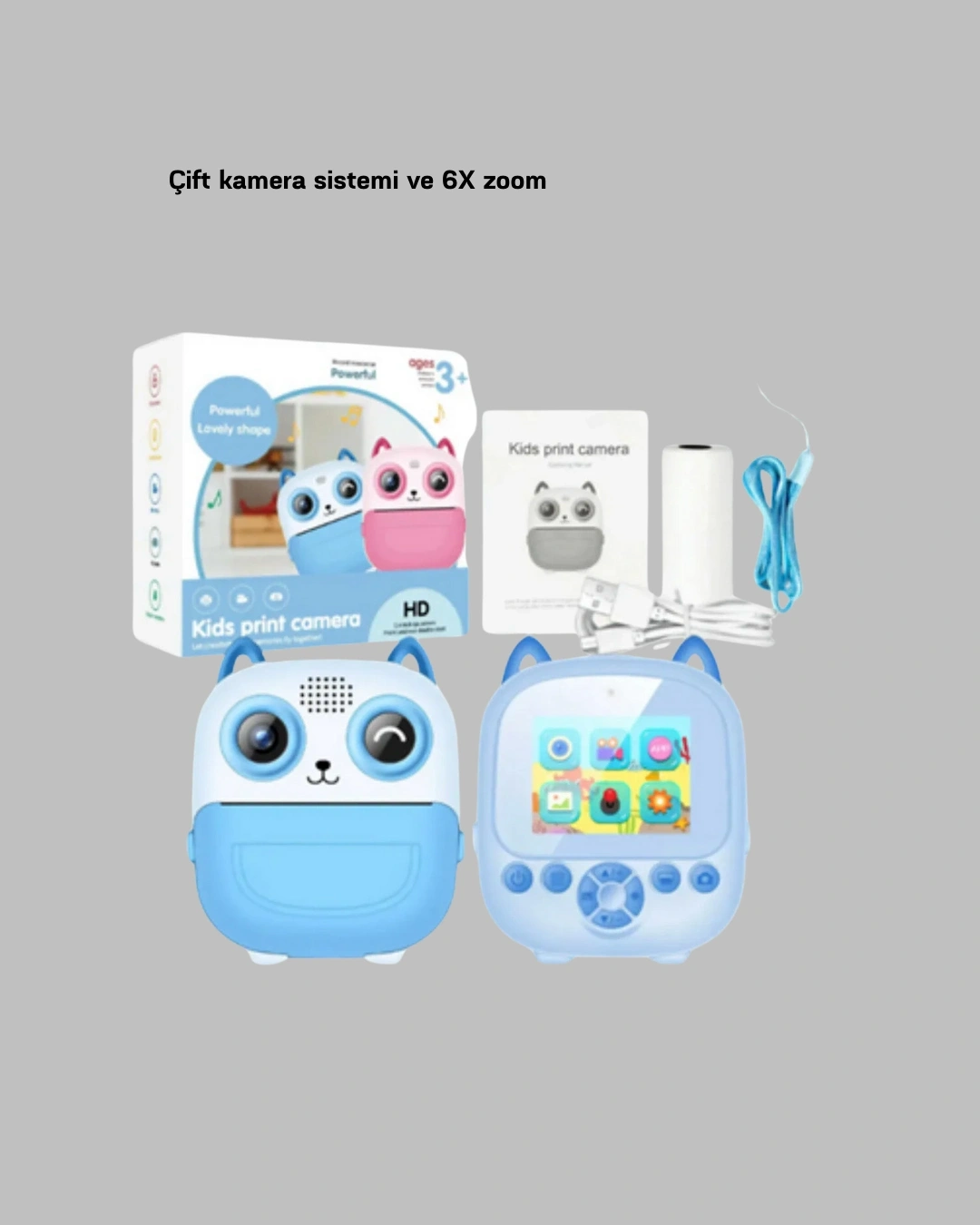 Eğlence ve öğrenmeyi bir araya getiren bu termal baskı özellikli çocuk kamerası, çocukların dünyasını renklendirmek ve yaratıcılıklarını desteklemek için tasarlanmış özel bir üründür. 48MP yüksek çözünürlüklü lens, en küçük detayları bile net şekilde yakalayarak çocukların çekim yaparken profesyonel hissiyat yaşamasını sağlar. 1080P video kaydı ile aile etkinlikleri, doğa yürüyüşleri, oyun anları gibi birçok hatıra kristal netliğinde kayıt altına alınabilir.Cihazın öne çıkan özelliği olan mürekkepsiz termal baskı sistemi, çocuklara fotoğraflarını birkaç saniye içinde basma imkânı sunar. Kartuş gerektirmeyen bu teknoloji hem ekonomik hem de pratiktir. Çocuklar çektikleri fotoğrafları anında albüm haline getirebilir, arkadaşlarına hediye edebilir veya kendi odalarını süslemek için kullanabilir.Kamera üzerinde bulunan çift lens, hem selfie hem de nesne çekimlerinde esneklik sağlar. 6X zoom ise uzak objelerin detaylı olarak çekilmesini mümkün kılar. Cihazın 2.4 inç renkli ekranı, çekimlerin net bir ön izlemesini sunarken kullanıcı dostu arayüz sayesinde çocuklar menüler arasında kolayca gezinebilir.Eğlence yalnızca fotoğraf çekmekle sınırlı değildir. Kamera içerisinde bulunan mini oyunlar ve müzik çalma özelliği, cihazı çok yönlü bir eğlence merkezine dönüştürür. Bu özellik, çocukların zaman geçirirken keyif almalarını sağlar.1300mAh batarya uzun çekim süreleri için güçlü bir performans sunarken, Type-C soketi hızlı ve kolay şarj imkânı sağlar. 32GB hafıza kartı desteği, çok sayıda fotoğrafı güvenle saklamayı mümkün kılar.Bu kamera, yaratıcılığı geliştirmek isteyen aileler için mükemmel bir teknolojik oyuncaktır. Çocukların hem oyun oynayıp hem de anılarını kaydedebileceği ideal bir hediye seçeneğidir.