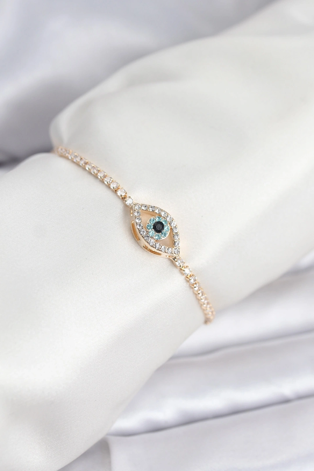 BFS Pirinç Gold Renk VIP Seri İnce Kemik Model Zirkon Taşlı Kadın Bileklik