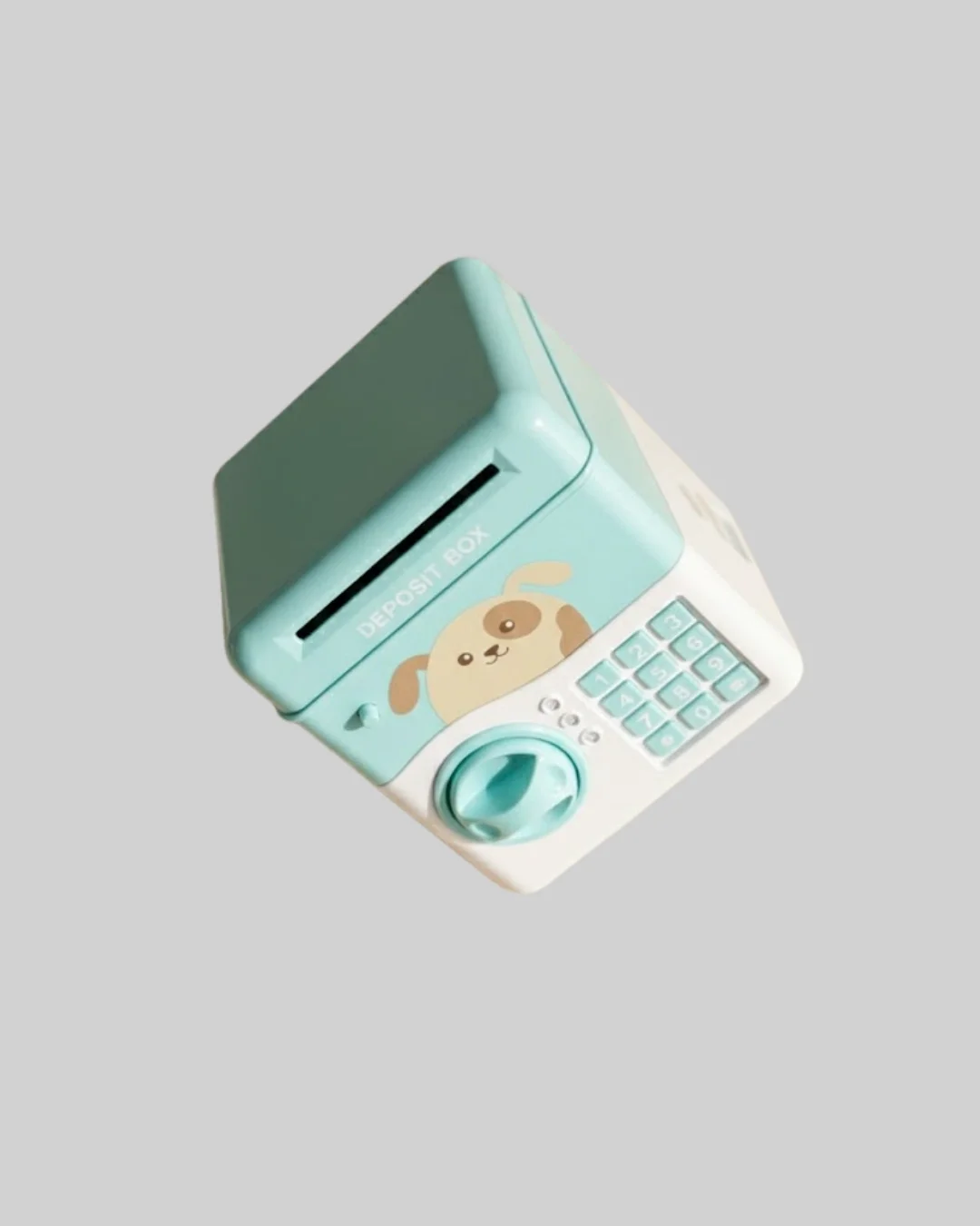 Bu su yeşili elektronik şifreli ATM görünümlü kumbara, çocuklar için eğitici bir tasarruf aracıdır. Kişisel şifre belirleme özelliği, çocukların birikimlerini güvenle saklamasını sağlar. ATM tasarımı sayesinde çocuklar kendilerini gerçek bir banka işlemi yapıyormuş gibi hisseder.Kâğıt paraların otomatik olarak içeri çekilmesi, ürünü son derece eğlenceli hale getirir. Işıklı ve sesli efektler, her kullanımda çocukların ilgisini çeker. Yüksek kapasiteli iç hacmi sayesinde bol miktarda para saklanabilir.Su yeşili rengi, ürüne ferah ve modern bir görünüm kazandırır. Dayanıklı ABS plastik yapısı uzun süreli kullanım sunar. Eğitici ve dekoratif yapısıyla çocuk odaları için idealdir.