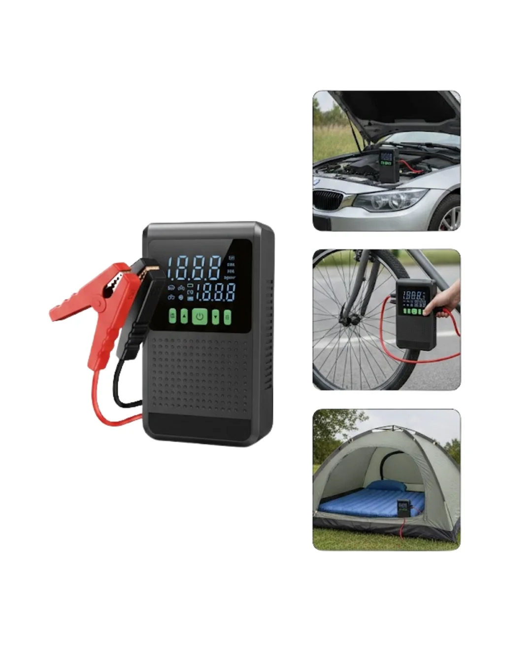 Araç güvenliği ve konforu için tasarlanan bu taşınabilir akü takviye ve hava kompresörü, sürücülere çok yönlü bir çözüm sunar. Akü takviyesi, lastik şişirme, mobil şarj ve aydınlatma fonksiyonları ile yolculukları daha güvenli hale getirir.Dijital kompresör sistemi, hassas basınç ayarı yapmayı mümkün kılar. Otomatik durma özelliği sayesinde kullanıcı hataları minimize edilir. Powerbank fonksiyonu, mobil cihazlar için pratik bir enerji kaynağı sunar.LED fener ve SOS modu, gece sürüşlerinde ve acil durumlarda görünürlüğü artırır. Kompakt yapısı ve taşıma çantası ile araçta düzenli şekilde saklanabilir. Günlük kullanım ve uzun yolculuklar için ideal bir yardımcıdır.