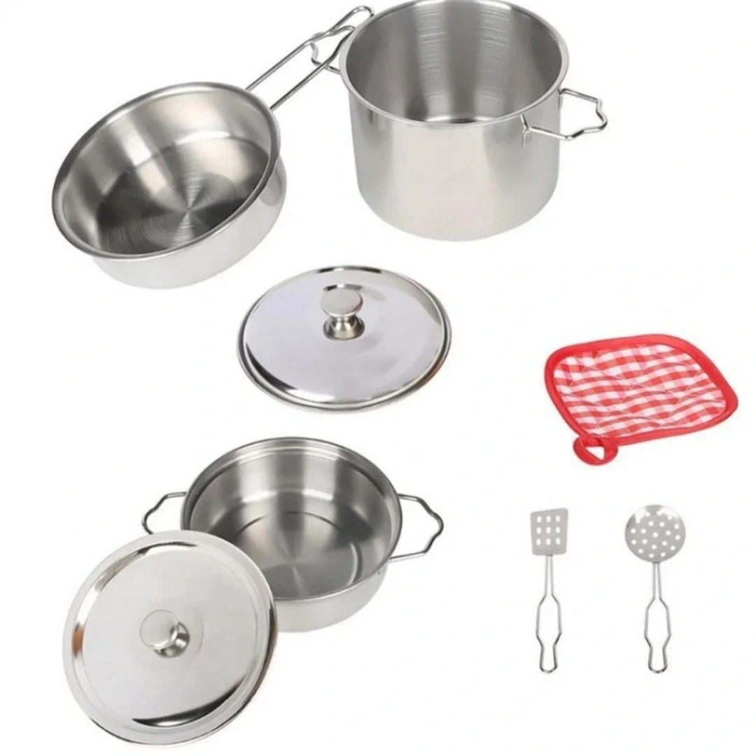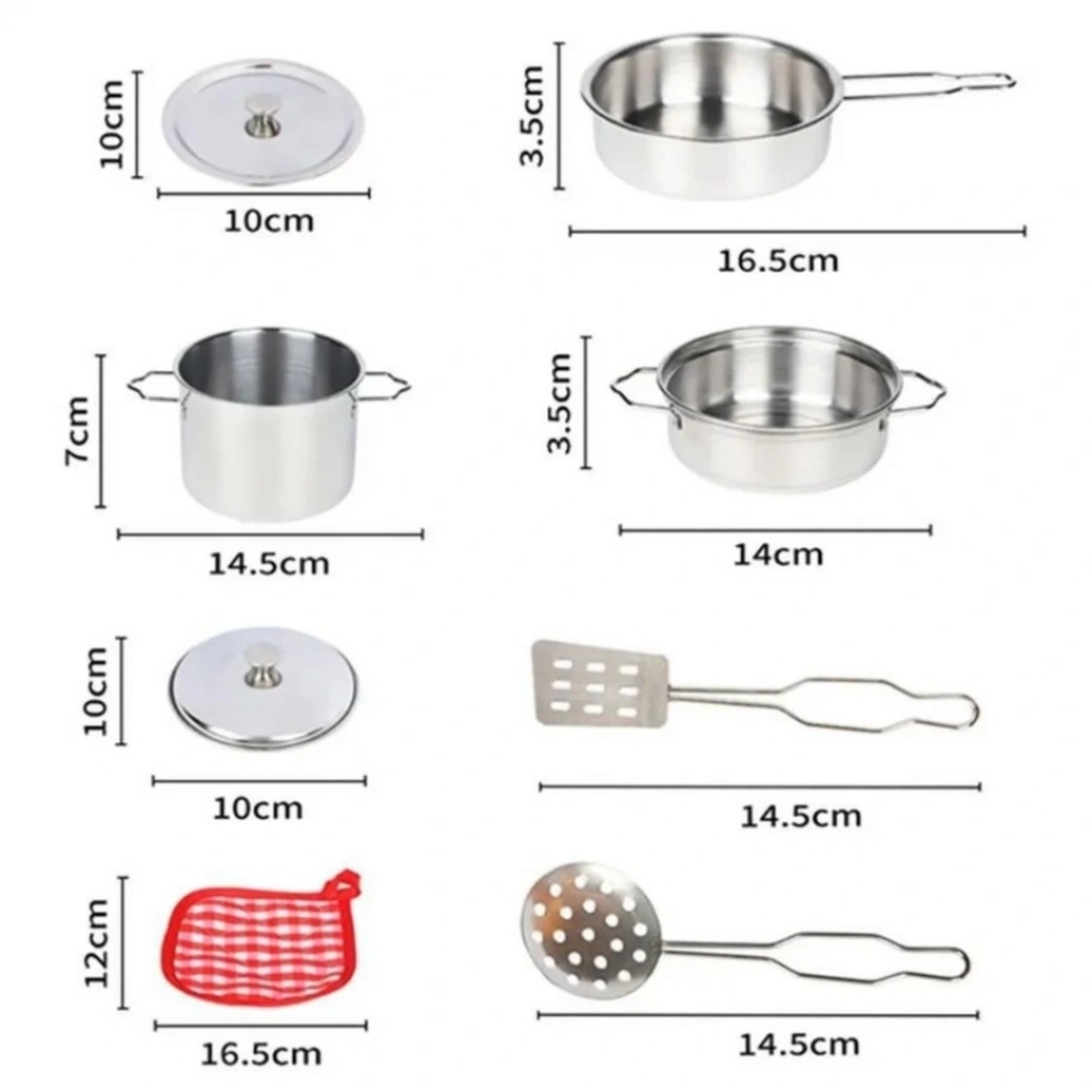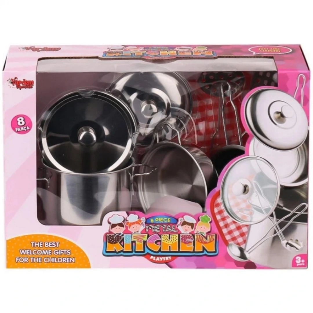 Çelik Tencere Tava Seti 8 Parça, çocuklara özel tasarlanmış, eğlenceli ve gerçekçi bir mutfak oyun setidir.