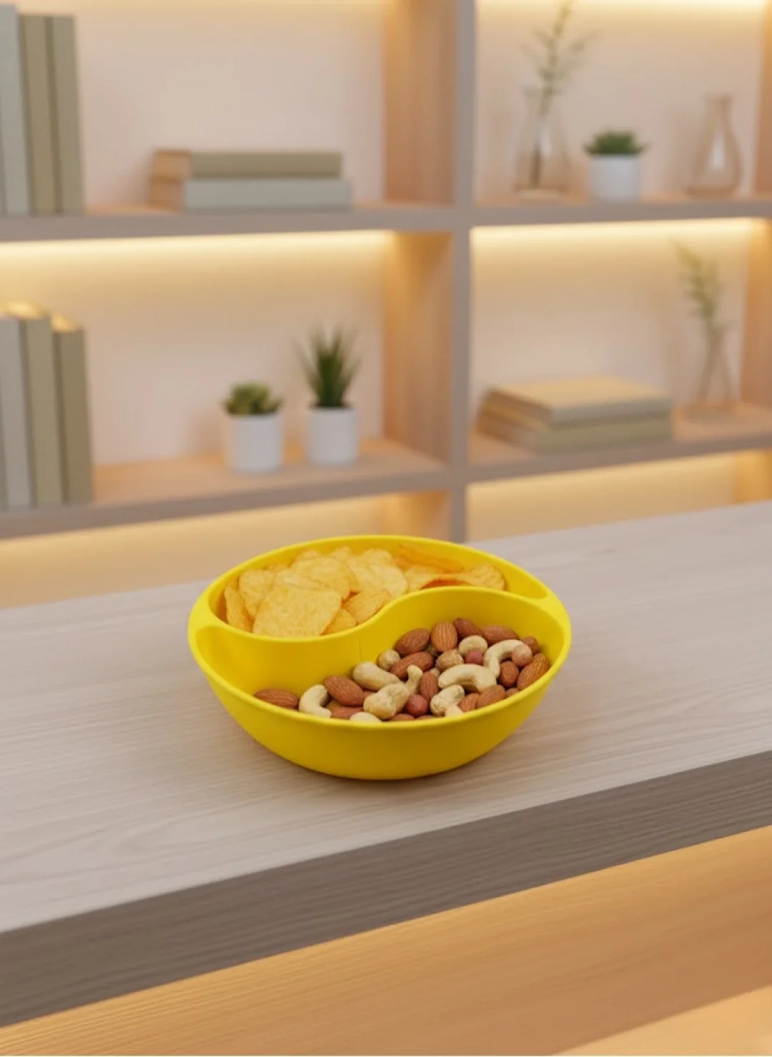 Sarı çerezlik kase seti, sade formu ve canlı rengiyle sunumlarınıza şıklık katmak için tasarlanmıştır. 3x12 cm ölçüsü, çerez ve atıştırmalıklar için yeterli alan sunarken masa üzerinde fazla yer kaplamaz. 4’lü set yapısı sayesinde farklı ikramları aynı anda sunma imkânı sağlar.Bölmeli tasarımı, sunum sırasında düzenli bir görünüm oluşturur. Kuruyemiş, kraker veya küçük atıştırmalıklar ayrı bölmelerde sunularak estetik bir masa düzeni elde edilir. Sarı rengi, özellikle loş ama aydınlık salon ortamlarında dikkat çekici bir kontrast oluşturur.Salon, sehpa, raf veya masa üstü kullanımına uygundur. Dekoratif görünümü sayesinde yalnızca bir mutfak ürünü değil, aynı zamanda masa düzenini tamamlayan bir aksesuar olarak da kullanılabilir. Günlük kullanımın yanı sıra misafir sofraları için de şık bir alternatiftir.