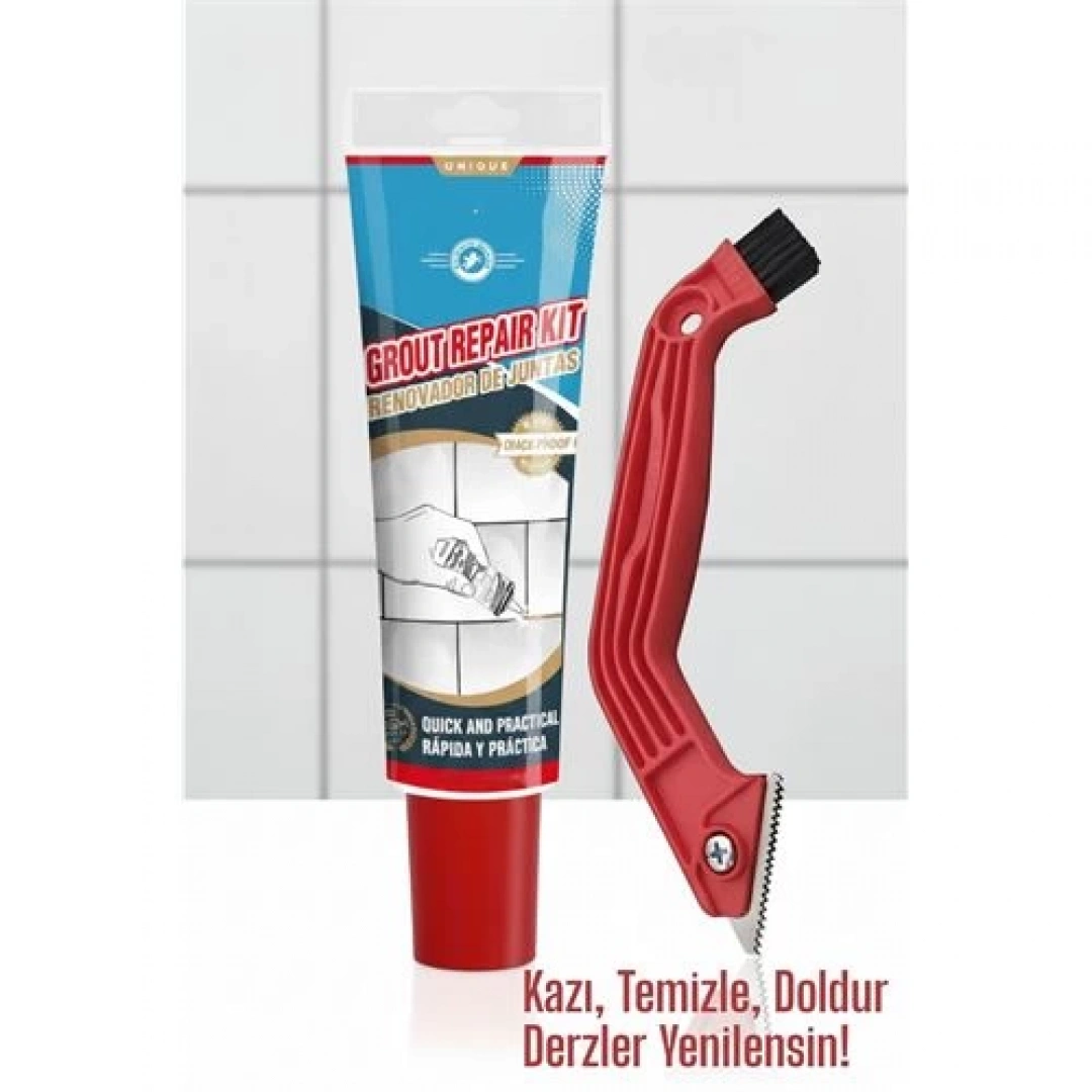 Avantajları: – İki aşamalı çözüm: Temizle + doldur – Çelik uç: Sert groutları kolayca söker – Fırça uç: Kazınan artıkları temizler – Hazır dolgu: Karışım gerektirmez, hızlı kurur – Antibakteriyel formül: Hijyenik ve uzun ömürlü – Su geçirmez yapı: Banyo ve mutfak için ideal