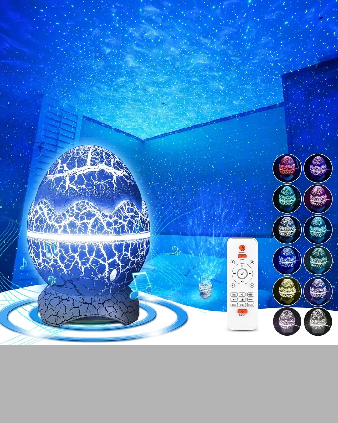 Odanızı bir galaksiye dönüştürmeye hazır olun! Bu benzersiz dinozor yumurta gece lambası projektörü, 14 farklı renk seçeneğiyle duvarlarınıza ve tavanınıza büyüleyici bir yıldızlı gökyüzü atmosferi yansıtıyor. Yüksek çözünürlüklü projeksiyon teknolojisi sayesinde nebula ve yıldız ışıkları, odanızın her köşesine net ve canlı şekilde yansır. modları ile akıcı renk geçişleri, rahatlatıcı bir atmosfer yaratır. Dilerseniz sabit bir renk seçebilir veya çok renkli geçiş modlarını etkinleştirerek galaksi görünümünü kişiselleştirebilirsiniz. 4 farklı hız ve parlaklık ayarı, her ortam ve ruh haline uygun bir aydınlatma sunar.Çocuklar için büyüleyici, yetişkinler için rahatlatıcı bir deneyim sağlar. Özellikle yatak odası, oturma odası, bebek odası veya çalışma alanlarında huzurlu bir ambiyans oluşturur.Dinozor yumurtası şeklindeki tasarımı, dekoratif bir obje olarak da dikkat çeker; çocuklar için hem eğlenceli hem de güvenli bir gece lambasıdır.Enerji tasarruflu LED sistemiyle uzun ömürlü kullanım sağlar. USB bağlantısı sayesinde kolayca şarj edilir veya adaptörle çalıştırılabilir.Işık terapisi etkisiyle stresi azaltır, uyku öncesi rahatlama sağlar ve yaratıcı bir atmosfer oluşturur.Kısacası, bu projektör yalnızca bir lamba değil; sizi galaksinin kalbine taşıyan bir ışık deneyimidir!