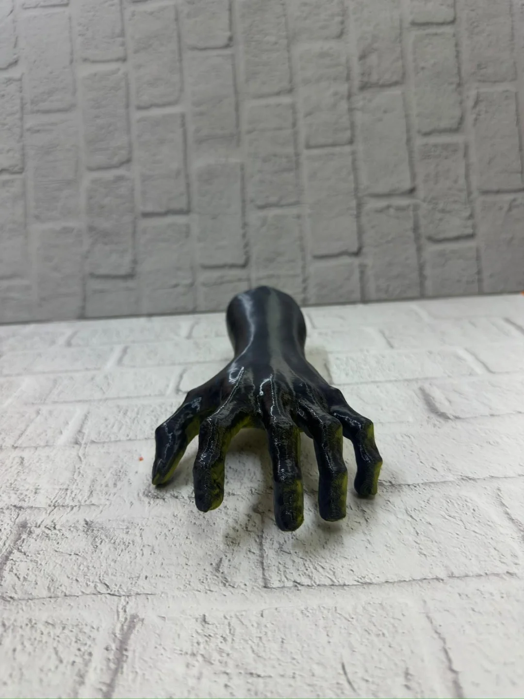 Altın ve yeşil tonlarının birleştiği bu özel el figürü, dekoratif objeler arasında özgün tasarımıyla öne çıkar. 22×7 cm boyutu, masaüstü dekorasyonlar için ideal ölçüdedir. Ürün, parmakların yukarı açık şekilde tasarlanmış formuyla adeta bir hareket anını donduruyormuş gibi görünür. Bu detay, heykelin enerjik ve canlı bir karakter kazanmasını sağlar.El figürleri; koruma, iletişim, üretkenlik ve ruhsal enerji gibi anlamlar taşıdığı için hem modern hem mistik dekorasyonlarda sıkça kullanılır. Bu heykel, evinizde veya ofisinizde dikkat çekici bir odak noktası oluşturur. Raf, vitrin, sehpa veya çalışma köşelerinde sergilendiğinde hem şık hem de sanatsal bir duruş sergiler.Koleksiyon ürünleri sevenlere, fantastik dekor meraklılarına, modern sanat objeleri toplayanlara ve eşsiz hediye arayanlara hitap eden özel bir parçadır. Yüzey dokusundaki detaylar, ışığı yansıtma biçimi ve renk tonlarıyla bulunduğu ortamın dekorasyonuna güçlü bir tarz katar.