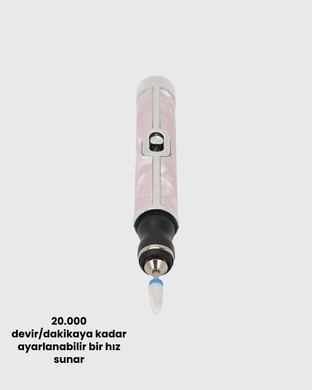 Günlük bakım alışkanlıklarını güçlendiren bu elektrikli tırnak matkabı, güzellik salonlarından alışık olduğunuz hassasiyeti evde sunar. Güçlü motoru sayesinde jel ojeleri sökerken tırnağınıza zarar vermez; akrilik şekillendirme işlemleri sırasında titreşim yapmadan sabit güç sağlar. 4 kademeli hız kontrolü ile amatör kullanıcılar bile rahatlıkla işlem yapabilir. Hem ileri hem geri dönüş özelliği, farklı açılarda çalışmayı kolaylaştırır. USB şarj sistemi taşınabilirlik sunarken, 500 mAh batarya günlük kullanım için fazlasıyla yeterlidir. Şık ve minimal gövde tasarımı, kullanım sırasında estetik ve konfor sağlar.