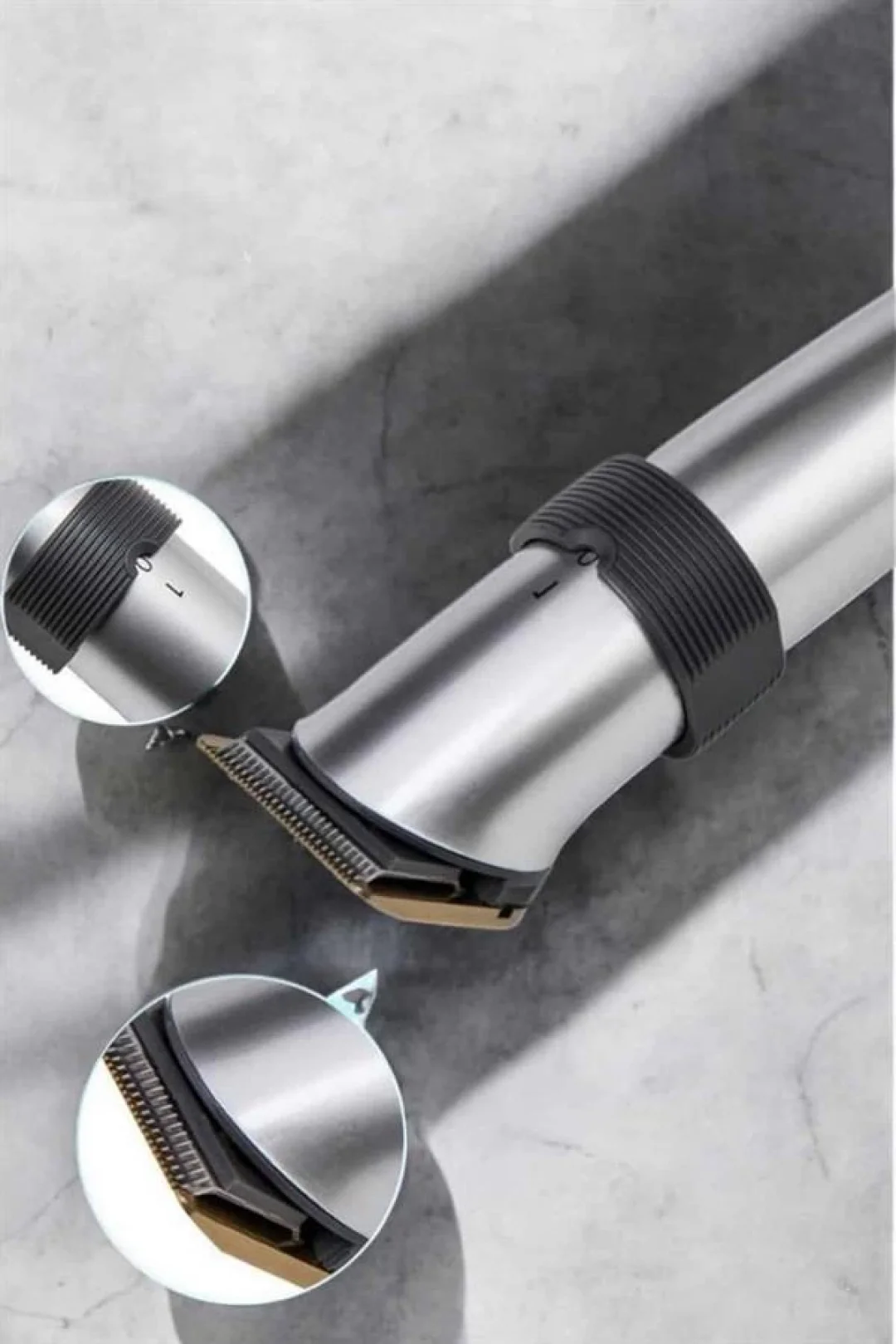 Evinizde veya kuaförde profesyonel tıraş deneyimi yaşamak isteyenler için mükemmel bir çözüm sunan bu şarjlı saç ve sakal kesme tıraş makinesi, güçlü motoru, yüksek kaliteli paslanmaz çelik bıçakları ve ergonomik tasarımıyla kullanım kolaylığı sağlar. Saç ve sakal şekillendirme konusunda size maksimum kontrol sunarak mükemmel sonuçlar elde etmenize yardımcı olur. Bu cihaz, zamandan tasarruf etmek ve kesintisiz sonuçlar almak isteyen herkes için ideal bir tercihtir.Profesyonel Sonuçlar, Ev Konforunda:Bu şarjlı tıraş makinesi, evde kullanabileceğiniz profesyonel düzeyde bir makine olup, saç, sakal ve bıyık kesimi gibi tüm kişisel bakım ihtiyaçlarınızı karşılar. Sıfır kesim başlığı ile kısa ve keskin bir tıraş, ayarlanabilir taraklı başlık ile ise sakallarınızı şekillendirerek uzunluğu ayarlayabilirsiniz. Makinenin gelişmiş motoru sayesinde, yoğun sakallarınızda bile zahmetsiz ve hızlı bir kesim deneyimi yaşarsınız. Bu cihaz, size profesyonel kuaför salonu kalitesinde tıraş sonuçları sunar.Kusursuz Konfor ve Kullanım Kolaylığı:Gelişmiş tasarımı sayesinde makine, elinize rahatça oturur ve uzun süre kullanımda dahi konfor sunar. Kaymayı engelleyen dış yüzeyi, cihazı elinizde güvenle tutmanızı sağlar. Ayrıca, oldukça sessiz çalışan motoru sayesinde tıraş esnasında rahatsızlık vermez. Kolayca açılıp kapanabilen güç düğmesi, başlık değiştirme sistemi ve pratik kullanımı sayesinde, tıraş işlemini zahmetsizce tamamlayabilirsiniz. Cihazın kablosuz tasarımı, sizi hareket özgürlüğü konusunda hiçbir şekilde kısıtlamaz.Uzun Ömürlü ve Verimli:Bu profesyonel tıraş makinesi, dayanıklı paslanmaz çelik bıçaklar sayesinde uzun ömürlüdür ve her kullanımda keskinliğini korur. Şarj edilebilir özelliği ile kablosuz kullanım sağlar ve 1 saatlik şarj ile 60 dakika boyunca kesintisiz kullanım imkanı sunar. Yüksek kapasiteli bataryası, uzun süreli kullanımda bile mükemmel performans sağlar. Ayrıca, otomatik güvenlik modları sayesinde güvenli bir kullanım deneyimi sağlar. Tüm bunlar, cihazın ömrünü uzatır ve bakımınızı uzun süre kaliteli bir şekilde yapmanıza yardımcı olur.Paket İçeriği: 1 Adet Şarjlı Tıraş Makinesi 5 Adet Ayarlanabilir Kesim Tarağı 1 Adet Yağ Şişesi 1 Adet Temizleme Fırçası 1 Adet Şarj Adaptörü