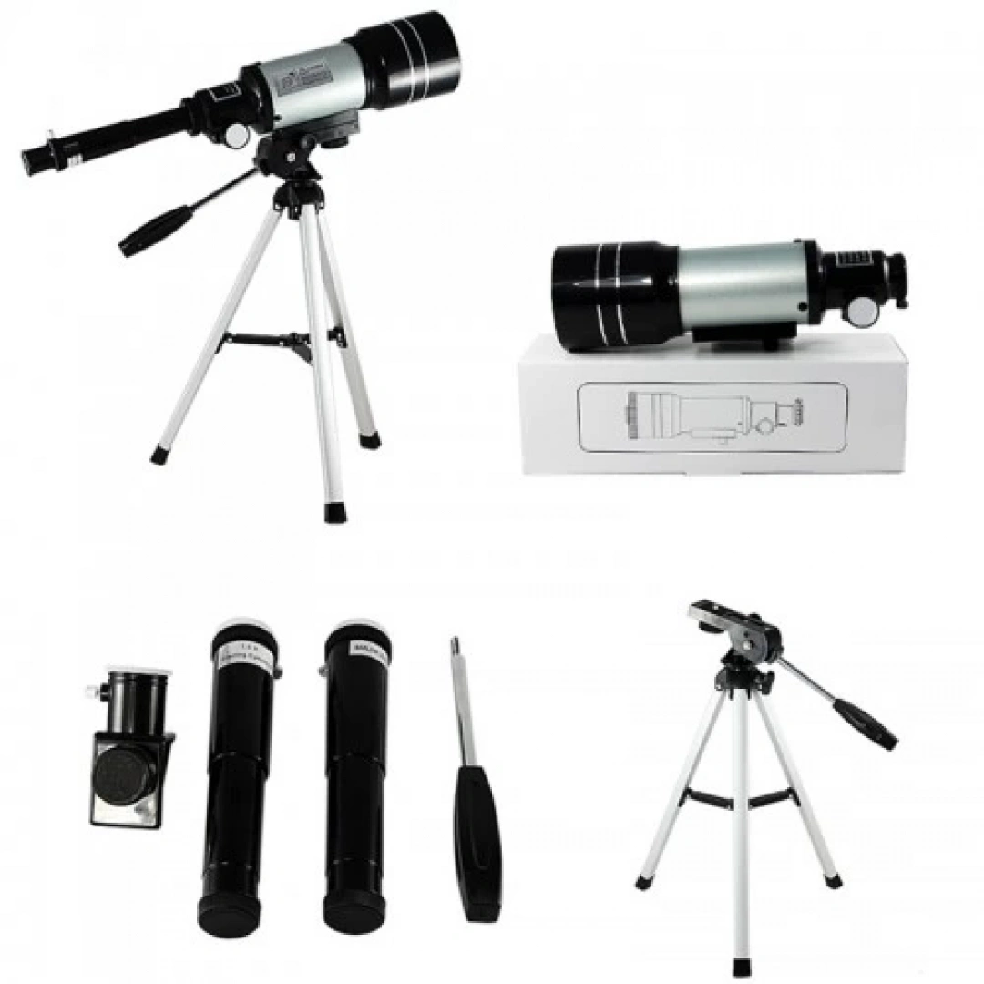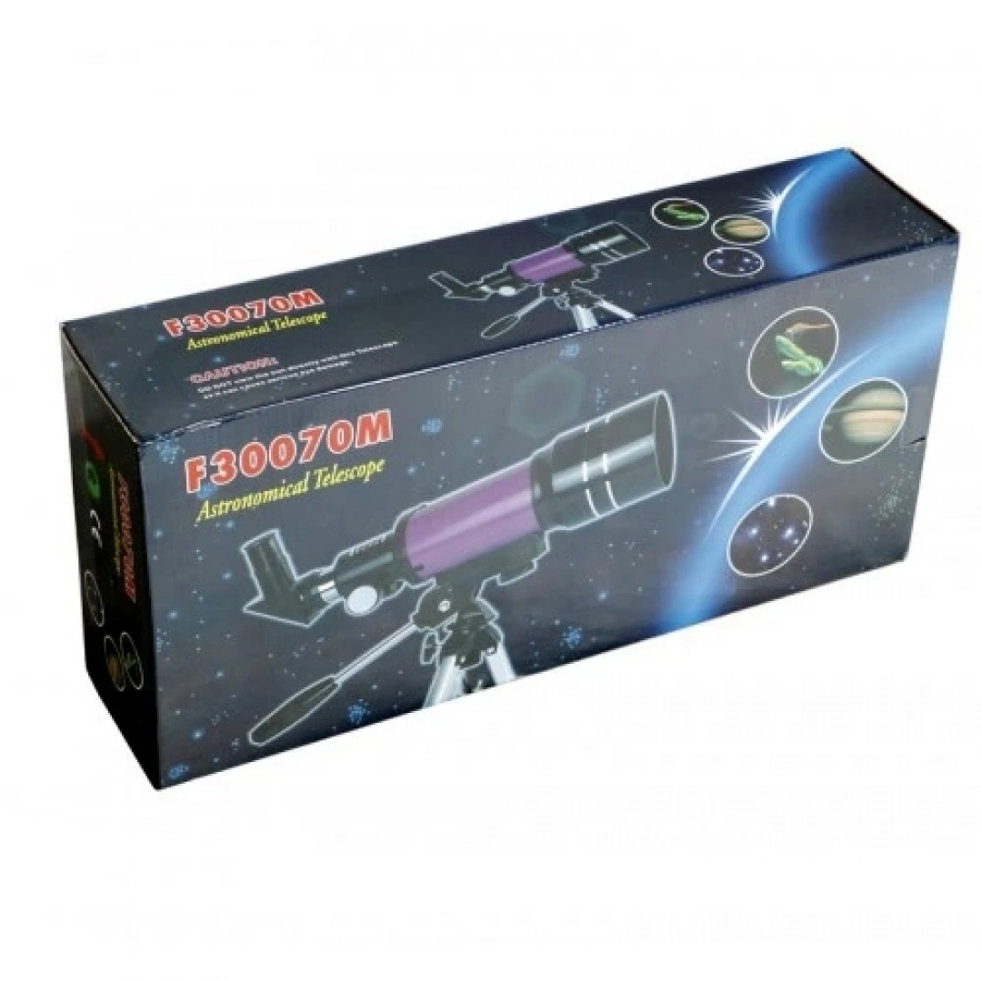 hava Ve Kara Teleskop F30070 Teleskop açıklık:70mm(2.4) odak Uzunluğu : 300mm(f/4) çapraz Hibrid : 90 maksimum Yükseklik : 38 Cm dikey Mikro Kolay Ayarlama Için yavaş Hareket Kontrol çubuklu aluminyum üçayak standart : 0.965" mercek : Span6mm,h20mm 3x Barlow Lens, 1.5x Erector Lens