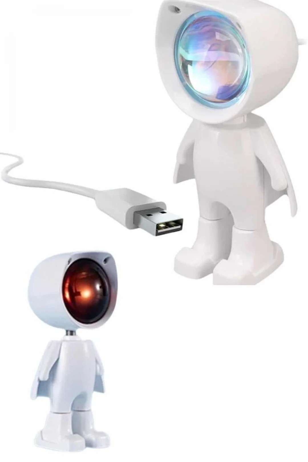 Gün batımı efektli bu şarjlı lamba, sevimli astronot tasarımı ile dikkat çeken hem işlevsel hem de dekoratif bir aydınlatma çözümüdür. LED ışık kaynağı sayesinde loş, yumuşak ve sıcak bir aydınlatma sunar; böylece ortamda huzurlu ve sakin bir atmosfer yaratır. Özellikle yatak odası, oturma odası ya da çalışma alanları gibi kişisel yaşam alanlarında hem gece lambası hem de ortam ışığı olarak rahatlıkla kullanılabilir.360 derece dönebilen başlığı ve 60 derece yukarı-aşağı hareket kabiliyeti sayesinde ışığın açısını kolaylıkla ayarlayabilir, istediğiniz duvar ya da alana doğrudan yansıtabilirsiniz. Bu sayede yalnızca ortama ışık vermekle kalmaz, aynı zamanda dekoratif bir efekt yaratır. Kompakt ve taşınabilir yapısıyla ev dışında da rahatlıkla kullanılabilir; ister seyahatlerde ister dış mekân etkinliklerinde şarjlı yapısıyla kablosuz olarak yanınızda taşıyabilirsiniz.USB kablosu ile kolayca şarj edilen bu ürün, tam dolumda yaklaşık 3-4 saat kesintisiz kullanım sunar. Güç kaynağına bağlıyken ise sınırsız kullanım avantajı sağlar. Dokunmatik kontrol paneli ile ışığı açıp kapamak ve parlaklık seviyesini ayarlamak son derece pratiktir. Bu özellik, hem kullanım kolaylığı hem de modern bir deneyim sunar.Gün batımı projektör lambası, yalnızca fonksiyonel bir gece lambası değil, aynı zamanda romantik ve sıcak bir ambiyans yaratmak isteyenler için eşsiz bir aksesuardır. Film izlerken, kitap okurken ya da sadece dinlenmek istediğinizde ortamı yumuşak ışığıyla dönüştürür. Ayrıca fotoğraf ve video çekimlerinde estetik bir arka plan ışığı olarak da kullanılabilir. Şıklığı ve işlevselliği bir arada sunan bu ürün, hem kendiniz için hem de sevdiklerinize hediye olarak ideal bir tercihtir.