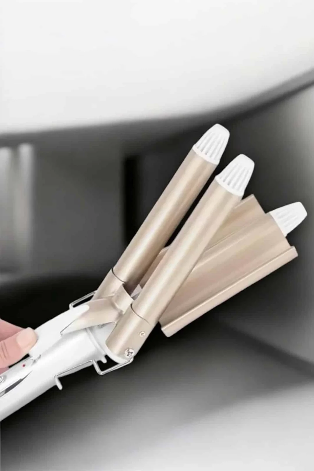 Saç maşası, tüm gün kalıcı bukleler için özel olarak tasarlanmıştır. 25 mm çapındaki üç namlulu seramik kaplama, saçlarınızı yıpratmadan şekillendirir ve sağlıklı bir görünüm kazandırır. PTC ısıtma sistemiyle donatılmış cihaz, yalnızca 30 saniyede ısınarak yoğun tempolu günlerde bile kolayca kullanıma hazır hale gelir. 170°C ve 220°C arasında değişen ayarlanabilir sıcaklık seviyeleri, ince ve kalın telli saçlar için ideal ısıyı seçmenize olanak tanır. Ergonomik tutamaç, haşlanma önleyici tasarımı ve ısı yalıtımlı braketi sayesinde güvenli bir kullanım sunar. Altın rengi estetik tasarımı, cihazın şıklığını tamamlar ve onu günlük bakım rutininizin vazgeçilmez bir parçası haline getirir.