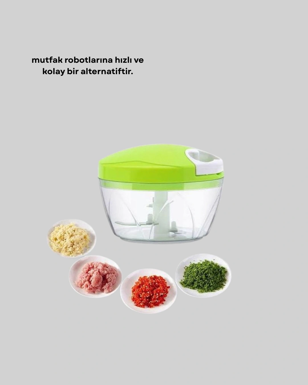 Bu manuel doğrayıcı, üç adet ultra keskin paslanmaz çelik bıçağı ile yüksek performans sunar. Bıçaklar eşit ve hızlı kesim sağlayarak homojen sonuç elde edilmesine yardımcı olur. İpli mekanizması sayesinde kullanıcıya tam kontrol imkânı tanır. Az veya çok doğrama ihtiyacına göre ip çekme sayısı ayarlanabilir. Sağlam yapısı ve güvenli tasarımıyla uzun süreli kullanım için uygundur. Ev mutfaklarında pratik çözümler arayanlar için ideal bir üründür.