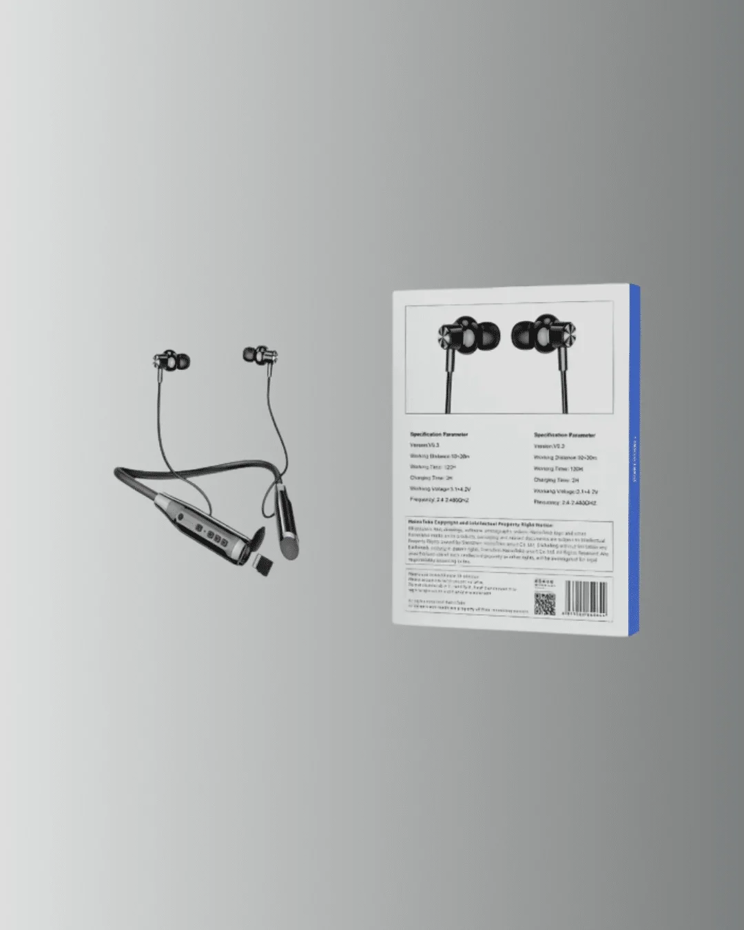 Ürün Tipi: Kablosuz Bluetooth kulaklık (Boyun askılı tasarım) Tasarım: Hafif, ergonomik boyun askılı yapı – spor ve günlük kullanım için ideal Bluetooth Versiyonu: Bluetooth 5.0 (hızlı ve stabil bağlantı) Bağlantı Menzili: 10 metreye kadar (engelsiz ortamda) Pil Kapasitesi: Yüksek kapasiteli dahili batarya