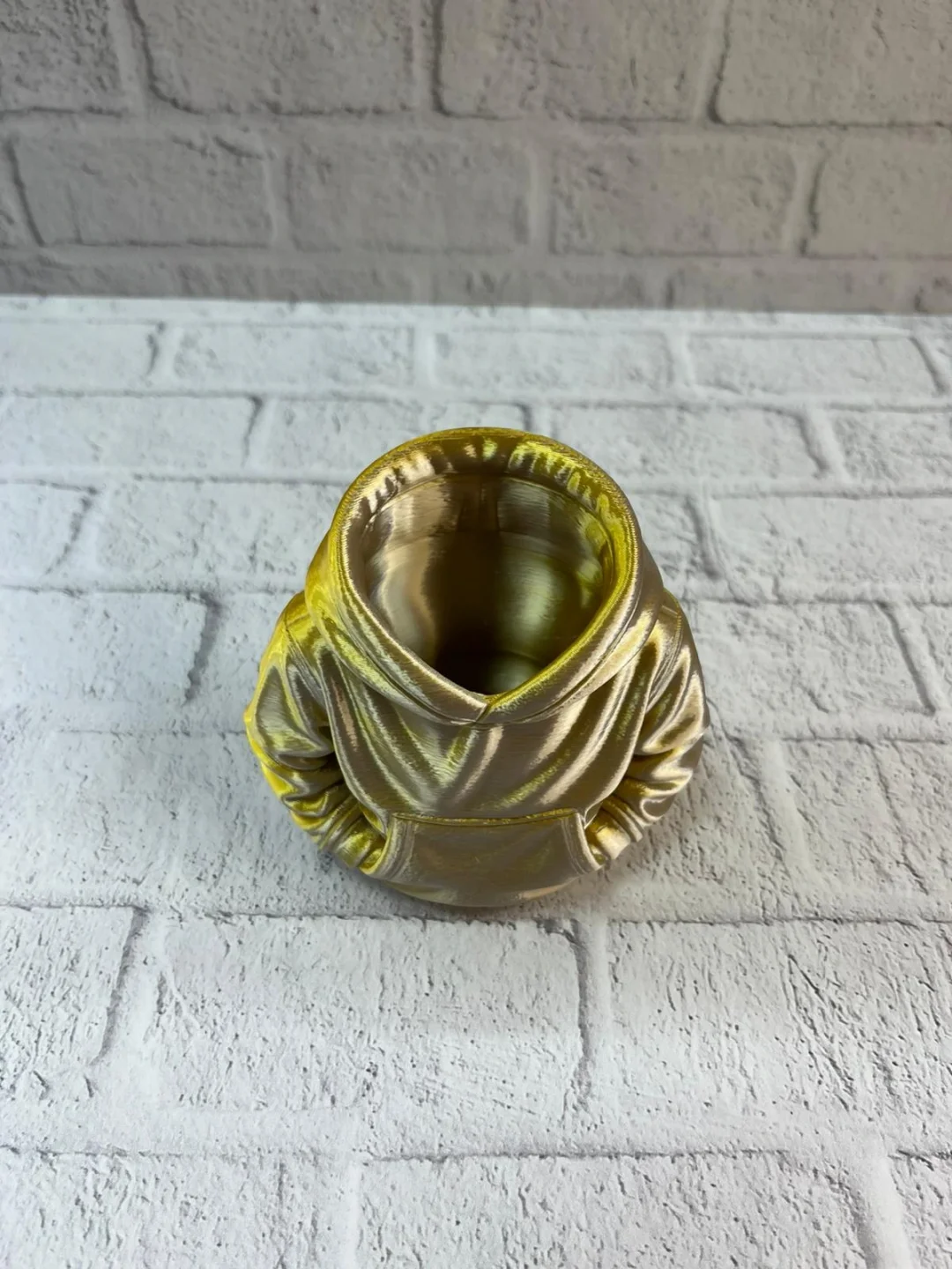 Gold hoodie kalemlik, masa üstü düzenini sağlarken aynı zamanda dekoratif bir görünüm sunan eğlenceli bir aksesuardır. 10x10 cm ölçüsü ile masa, raf veya kitaplık üzerinde rahatlıkla kullanılabilir. Hoodie şeklindeki tasarımı, ürünü sıradan kalemliklerden ayırarak özgün bir stil ortaya koyar.Gold rengi, bulunduğu alana ışıltılı ve şık bir hava katar. Evde çalışma alanlarında, ofis masalarında veya genç odalarında rahatlıkla tercih edilebilir. Kalem, silgi ve küçük ofis gereçlerini düzenli şekilde saklamaya yardımcı olurken masa üstünde estetik bir detay oluşturur.Dekoratif yapısı sayesinde yalnızca işlevsel bir kalemlik değil, aynı zamanda masa düzenini tamamlayan bir obje olarak da kullanılabilir. Küçük boyutları sayesinde dar alanlarda bile yer kaplamaz ve düzenli bir görünüm sağlar.Dayanıklı yapısı ile günlük kullanıma uygundur. Masa üstüne hem şıklık hem de hareket katmak isteyenler için ideal bir üründür. Eğlenceli tasarımı sayesinde hediye alternatifi olarak da öne çıkar.