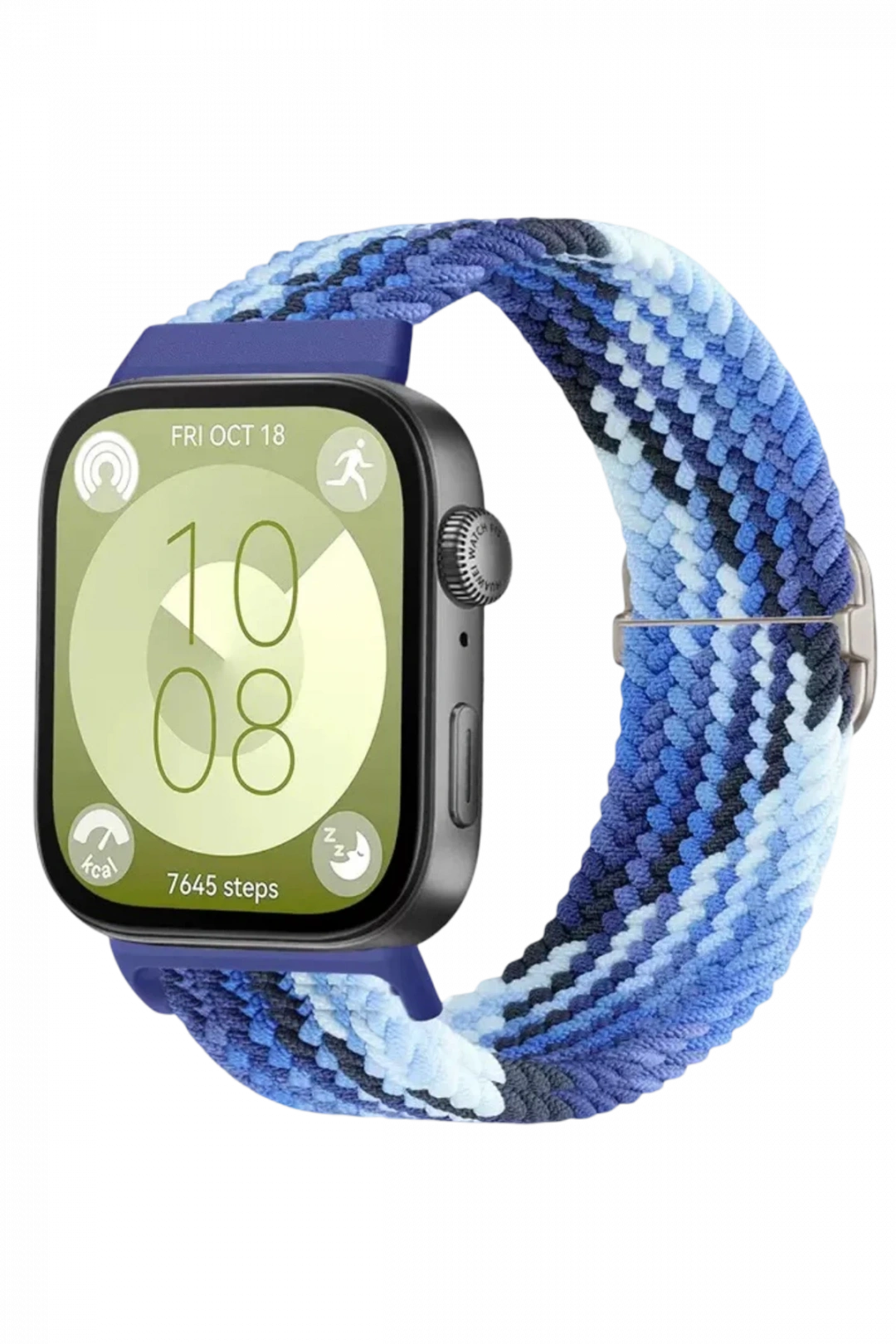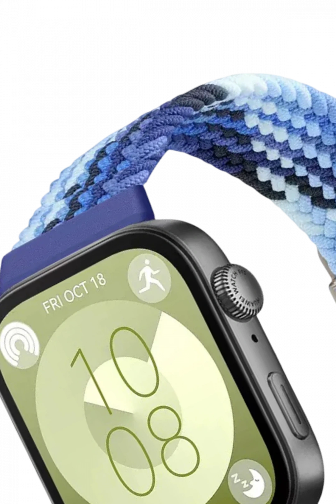 BFS Huawei Fit 4 Hasırlı Cırtcırtlı Kordon - Mavi-Beyaz