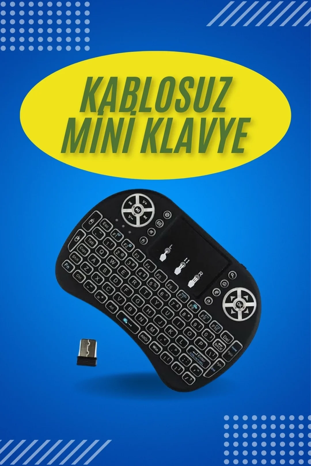 Yalnızca siyah renkte sunulan bu mini klavye, şık ve modern bir görünüme sahiptir. 92 gram ağırlığı ve 14.7x9.8x2 cm boyutları ile oldukça taşınabilir bir yapıdadır. 50mA voltaj gücüne sahip olup, enerji tüketimi açısından da oldukça verimlidir. Kutu içeriğinde bir adet mini klavye, bir adet USB verici ve bir adet kullanım kılavuzu bulunmaktadır. Hem günlük kullanımda hem de Smart TV veya oyun konsolları gibi cihazlarla rahat bir kullanım sunan Smart Işıklı Kablosuz Mini Klavye, pratikliği ve taşınabilirliği ile ön plana çıkan ideal bir klavye modelidir.