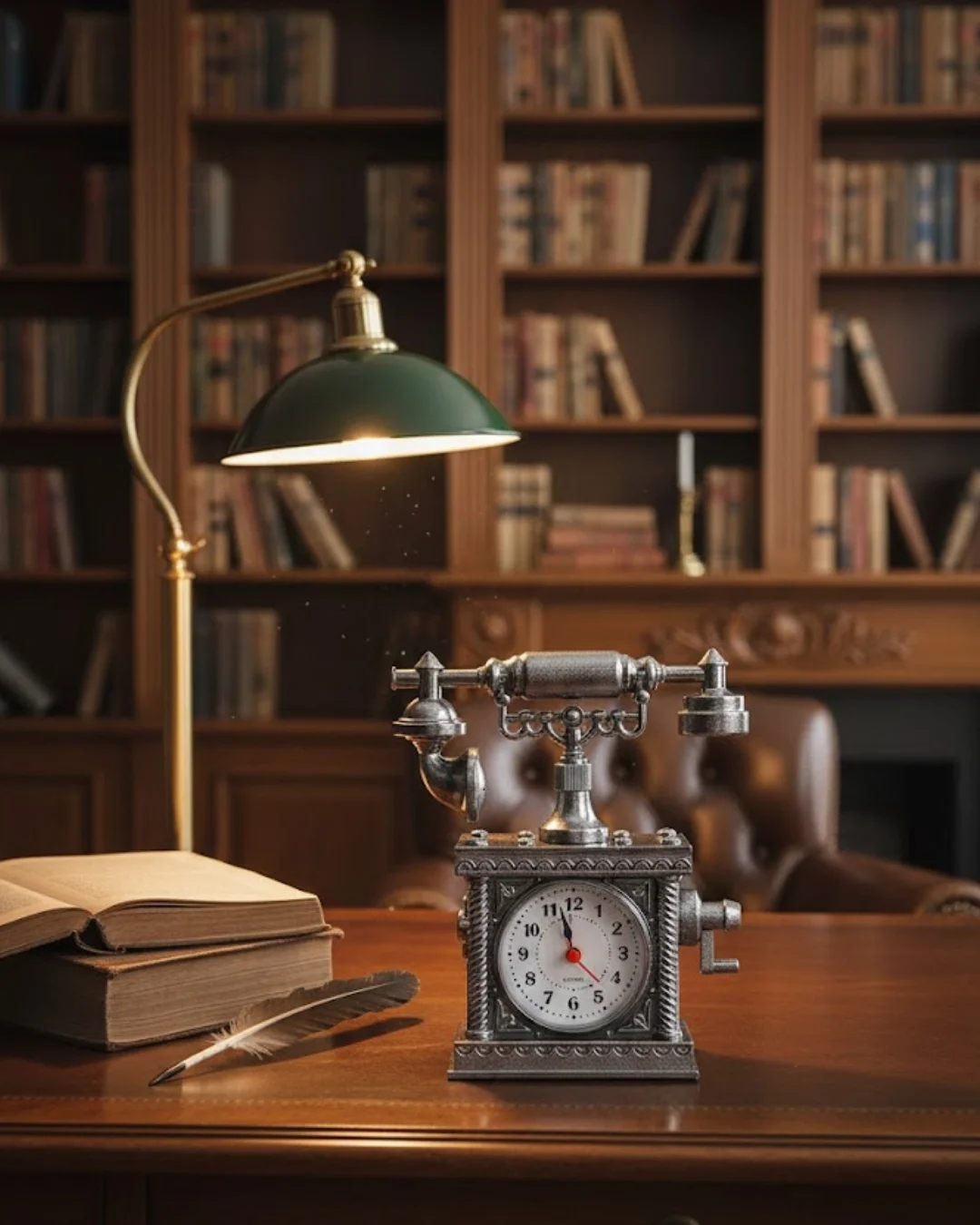 Klasik telefon görünümlü masa saati, geçmişin izlerini taşıyan tasarımıyla yaşam alanlarınıza nostaljik bir hava kazandırır. Eski tip telefon formu, dekoratif detaylarla birleştirilerek hem şık hem de kullanışlı bir çalar saat ortaya çıkarılmıştır. Günlük kullanımda pratiklik sunarken, dekoratif yönüyle de ön plana çıkar.Saat kadranı, kalın rakamları sayesinde kolay okunabilir yapıdadır. Zamanı net şekilde gösterir ve her açıdan rahatlıkla görülebilir. Yüksek sesli alarm özelliği, belirlenen saatte etkili bir uyarı sunarak güne zamanında başlamanıza yardımcı olur. Alarm ayarı ve saat ayarı, arka kısımda yer alan tuşlar aracılığıyla zahmetsizce yapılır.Pille çalışması, ürünü kablosuz hale getirir ve kullanım alanını genişletir. Komodin üzerinde çalar saat olarak, çalışma masasında masa saati olarak veya raf üzerinde dekoratif obje olarak değerlendirilebilir. Dayanıklı plastik malzemeden üretilmiş gövdesi, uzun süreli kullanım için uygundur ve hafifliği sayesinde kolay taşınır.Dekoratif özellikleri sayesinde yalnızca bir saat olmanın ötesine geçer. Retro, vintage ve klasik dekorasyon tarzlarıyla mükemmel uyum sağlar. Aynı zamanda modern dekorasyonlarda da dikkat çekici bir tamamlayıcı olarak kullanılabilir. Mekana karakter katan bu masa saati, ev ve ofis ortamlarında estetik bir detay oluşturur.Hediye alternatifi olarak değerlendirildiğinde ise zamansız bir seçenektir. Doğum günü, ev hediyesi veya özel günler için anlamlı ve şık bir hediye sunar. Hem dekoratif hem de işlevsel olması, bu ürünü sıradan hediyelerden ayırır.