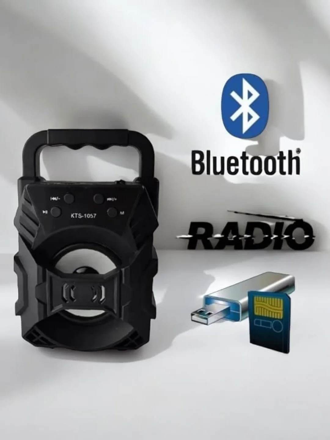 Taşınabilir Hoparlör 1057 Yüksek SesExtra Bass Ses Kalitesi Kablosuz Bağlantı çekim mesafesi 10 metre Şarj edilebilir.Batarya FM Radyo: VarÜrün boyutları: 10X8X14Radyo moduna geçtiğinizde ilk olarak cızırtılı çekiyorsa. -Play tuşuna 2 sn. basılı tutarsanız kanal araması yapacaktır.Kanal aramasından sonra düzgün bir radyo imkanı sunar.32 Gb Usb ve Sd Karta kadar destekler.Kutu içeriği : 1 Adet Hoparlör 1 Adet Micro Usb Şarj Kablosu