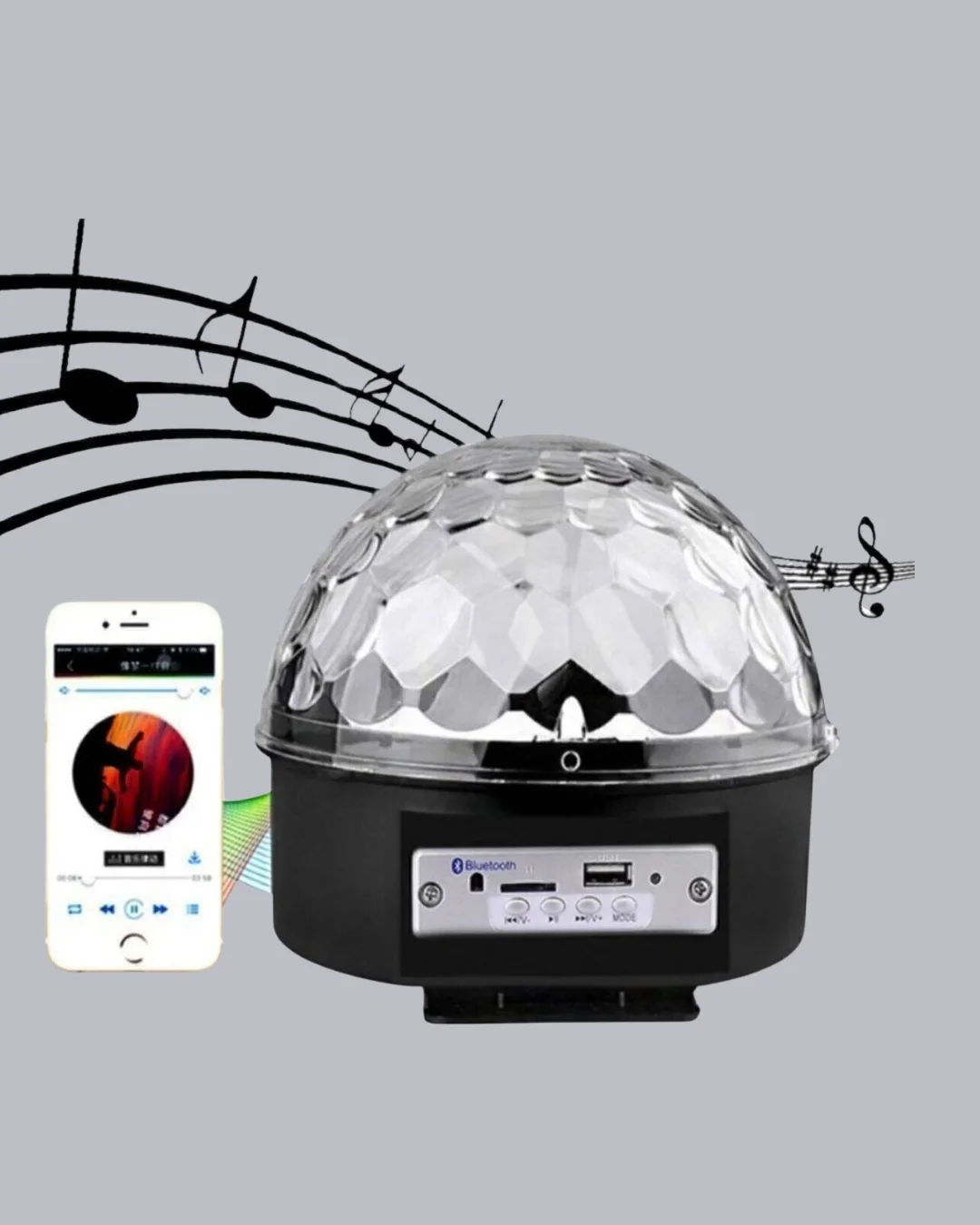 Dans pistini evinize taşıyın!LED Disko Küresi Bluetooth Hoparlörlü, müzikle senkronize LED ışıkları ve yüksek kaliteli hoparlörüyle tam bir eğlence deneyimi sunar.6 adet dönebilen LED ışık, rengarenk efektleriyle partilerinize hareket katar.Bluetooth bağlantısı sayesinde akıllı telefon, tablet veya dizüstü bilgisayarınızdan müziklerinizi kolayca çalabilirsiniz.Ayrıca USB bellek ve SD kart girişi ile cihazı bağımsız bir müzik çalara dönüştürebilirsiniz.Ritim algılama özelliği, müzik temposuna göre ışık efektlerini değiştirerek görsel bir şölen sunar.Taşınabilir ve kompakt tasarımı sayesinde her mekanda kullanılabilir — evde, kafede, arabada veya açık hava etkinliklerinde fark yaratır.Enerji tasarruflu LED’ler, uzun ömürlü kullanım sunarken, disko atmosferini her an yaşamanızı sağlar.Kutuda USB şarj kablosu ve kullanım kılavuzu bulunur.Müziği sadece duymayın, ışıklarıyla da hissedin!