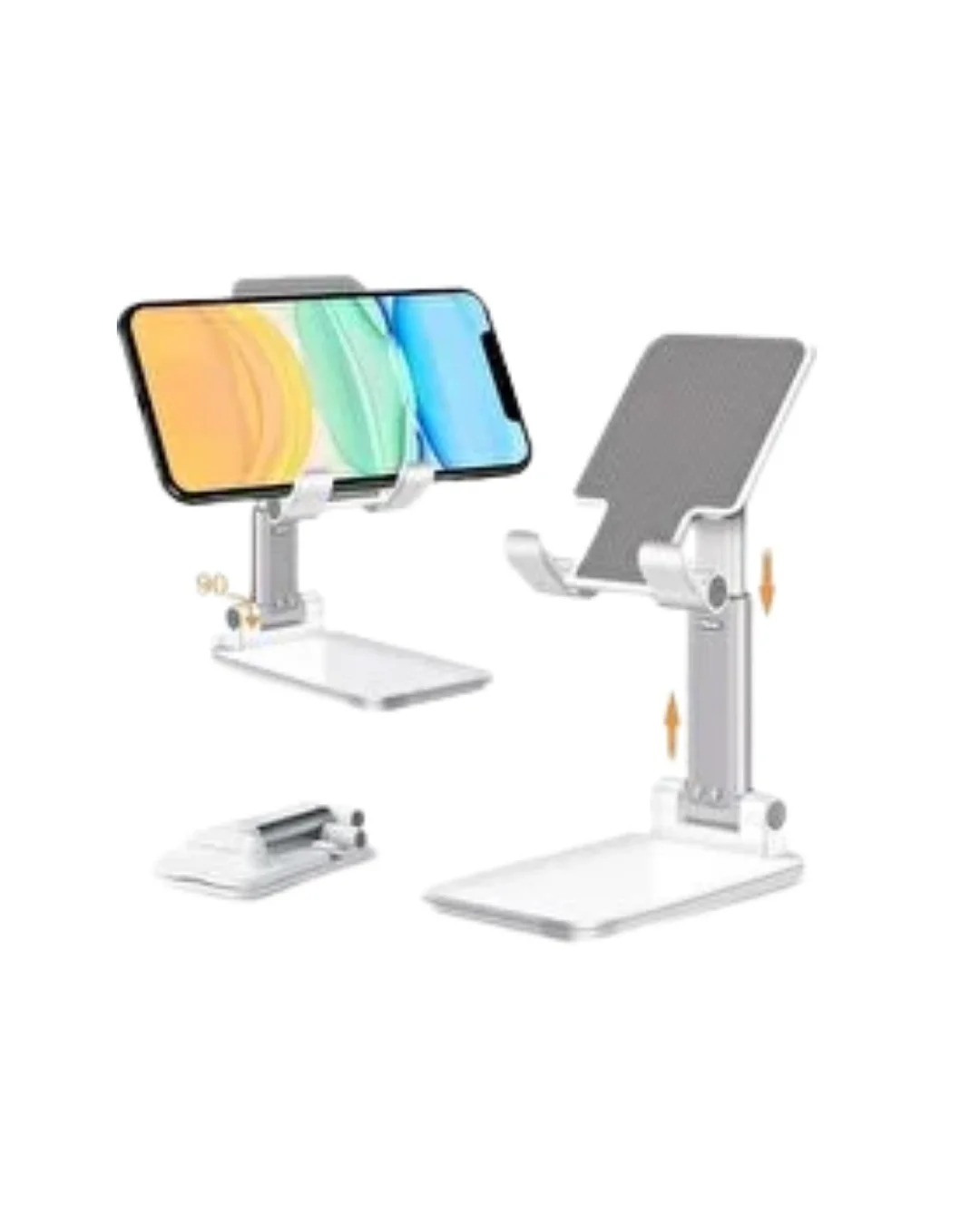 Ayarlanabilir masaüstü telefon tutucu, fonksiyonel tasarımı ve sağlam yapısıyla günlük telefon kullanımını daha konforlu hale getirmek için geliştirilmiştir. Telefonu masa üzerinde sabit bir noktada tutarak eller serbest kullanım imkânı sunar. Özellikle uzun süreli video izleme, çevrim içi toplantı ve ders takibi gibi durumlarda kullanıcıya rahatlık sağlar.Yüksek kaliteli ABS plastik malzeme, ürünün hafif olmasına rağmen dayanıklı bir yapıya sahip olmasını sağlar. Telefonun temas ettiği alanlarda kullanılan silikon yüzey, kaymayı önleyerek cihazın sabit durmasına yardımcı olur. Çelik levha destekli iç yapı, standın sağlamlığını artırır ve 350 grama kadar olan telefonları güvenle taşımasına imkân tanır.Ayarlanabilir yükseklik sistemi, minimum 125 mm ve maksimum 164 mm arasında farklı kullanım seçenekleri sunar. Bu özellik, ekranın göz hizasına getirilmesini kolaylaştırır ve ergonomik bir kullanım deneyimi sağlar. 4 santimetreye kadar ek yükseklik ayarı, farklı masa ve çalışma düzenlerine uyum sağlamasına yardımcı olur.Katlanabilir tasarımı sayesinde ürün, seyahatler için oldukça uygundur. Katlandığında kompakt boyutlara ulaşarak çanta içinde kolayca taşınabilir. 4.7–6.7 inç ekran boyutuna sahip tüm akıllı telefonlarla uyumlu olması, geniş kullanım alanı sunar. Beyaz renkli sade tasarımı, ofis ve ev ortamlarında temiz ve düzenli bir görünüm oluşturur. Günlük kullanımda pratiklik, ergonomi ve güvenliği bir arada sunan bir masaüstü telefon standıdır.