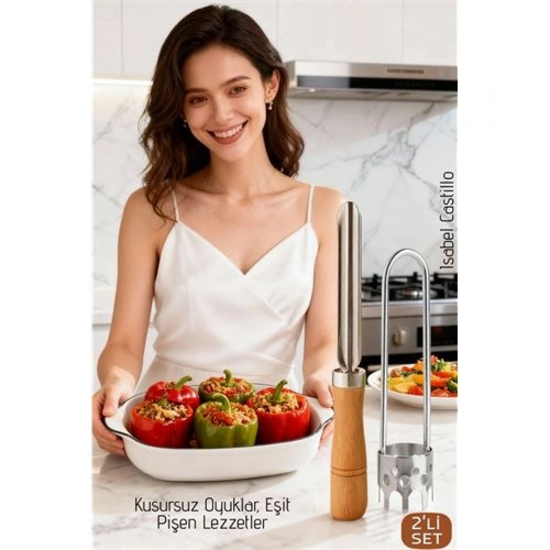 Adet Bilgisi: Sepete 1 eklediğinizde, mutfağınıza değer katacak 2 adet profesyonel oyma aparatı (1 Adet Ahşap Saplı Kabak Oyacağı & 1 Adet Paslanmaz Çelik Biber Oyacağı) gönderilecektir.