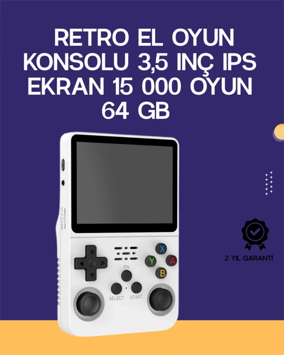 R36S Retro El Oyun Konsolu, 3.5 inç IPS tam laminasyon ekranı ve 640x480 çözünürlüğü ile retro oyunları yüksek görüntü kalitesiyle sunar. 64 GB oyun belleği ve ek 32 GB işletim sistemi belleğiyle birlikte toplam 15.000’den fazla klasik oyun barındırır. Cihaz; PS1, PSP, Dreamcast, GameBoy serisi, SNES, MAME gibi çok sayıda platformu destekler. Dört çekirdekli 64-bit ARM Cortex-A35 tabanlı RK3326 işlemcisi ve Mali-G31 MP2 GPU’su ile yüksek performans sağlar. ArkOS açık kaynak işletim sistemi sayesinde yazılım üzerinde özelleştirme yapılabilir. Ürün kutusu içinde cihaz, USB-C kablosu, ekran koruyucu ve kullanıcı kılavuzu yer alır. 3200 mAh dahili pil ile 6 ila 8 saat arası kesintisiz oyun deneyimi sunar.