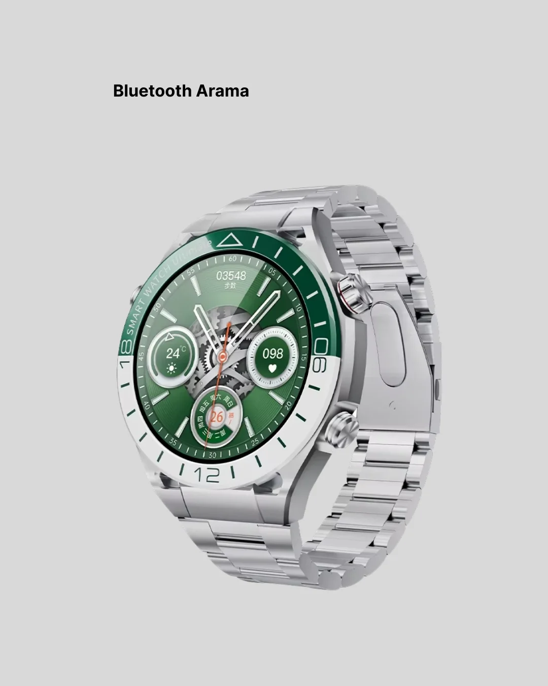Amoled ekran teknolojisi ile donatılmış bu akıllı saat, kristal netliğinde görüntü kalitesi sunarak ekran deneyimini üst seviyeye taşır. Renklerin derinliği, ışık hassasiyeti ve çözünürlük seviyesi sayesinde menüler, bildirimler ve haritalar çok daha canlı ve keskin görünür. Gün boyu ekranı rahatça takip etmek için ideal bir paneldir.Saatin sunduğu harita gösterimi, onu standart akıllı saatlerden ayıran önemli bir özelliktir. Rota takibi doğrudan bilekten yapılabilir ve bu durum spor aktiviteleri, doğa yürüyüşleri ve şehir içi gezilerde büyük kolaylık sağlar. Harita detaylarının Amoled ekranda net görünmesi kullanıcı deneyimini güçlendirir.Ürün üç değiştirilebilir kayışla birlikte gelir. Silikon kayış spor aktiviteleri için esneklik ve rahatlık sunarken, deri kayış günlük kullanımda yumuşak bir konfor sağlar. Paslanmaz çelik kayış ise şık ve prestijli bir görünüm arayan kullanıcılar için mükemmel bir seçenektir. Kayışların saniyeler içinde değiştirilebilir olması, akıllı saati çok yönlü bir aksesuar haline getirir.Bluetooth arama özelliği, telefonun yanınızda olmasına gerek kalmadan arama yapma ve gelen çağrıları yanıtlama imkânı sunar. Bu özellik özellikle hareket halindeki kullanıcılar için pratik ve hızlı bir çözüm sağlar.Saat; kalp atış hızı, adım sayısı, kalori ölçümü ve uyku takibi gibi gelişmiş sağlık özellikleriyle günlük yaşamı daha verimli planlamanıza yardımcı olur. Spor modları ve sağlık verileri, fitness hedeflerine ulaşmak isteyen kullanıcılar için önemli bir destek sağlar.IP67 su geçirmezlik ve hızlı manyetik şarj teknolojisi, dayanıklılık ve pratik kullanım açısından büyük bir avantaj sunar. Uzun pil ömrü sayesinde saat günlerce kesintisiz kullanılabilir.Estetik, güçlü performans ve akıllı özellikleri bir araya getiren bu model hem günlük kullanıcılar hem spor tutkunları hem de teknoloji severler için ideal bir akıllı saat seçeneğidir.