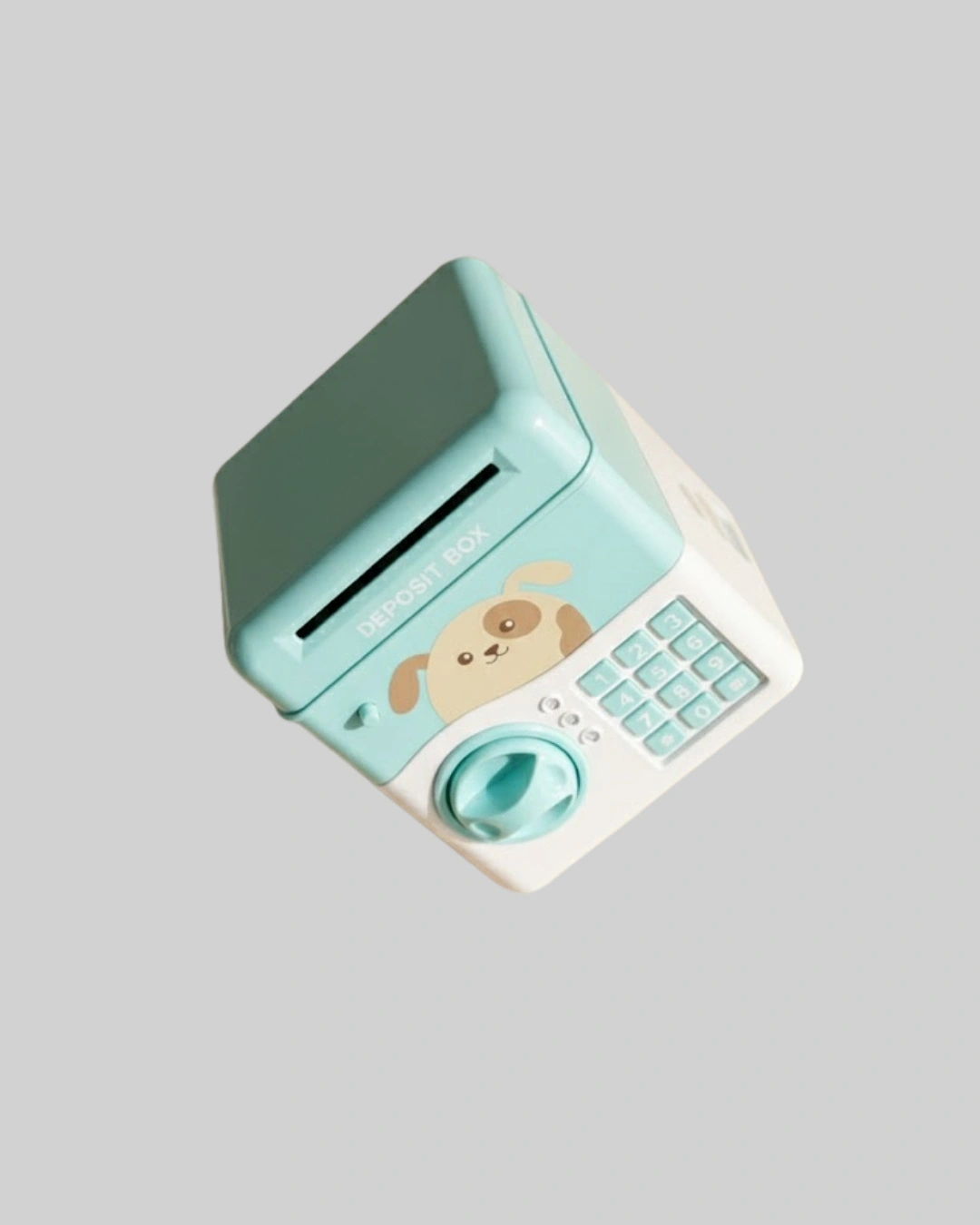 Bu su yeşili ATM kasa tasarımlı elektronik kumbara, hem eğitici hem de dekoratif bir üründür. Kişisel şifre sistemi ile güvenli kullanım sunar.Otomatik para girişi, ışık ve ses efektleriyle birleşerek çocuklar için keyifli bir deneyim oluşturur. Doğum günü, bayram ve karne hediyesi olarak mükemmel bir seçenektir.