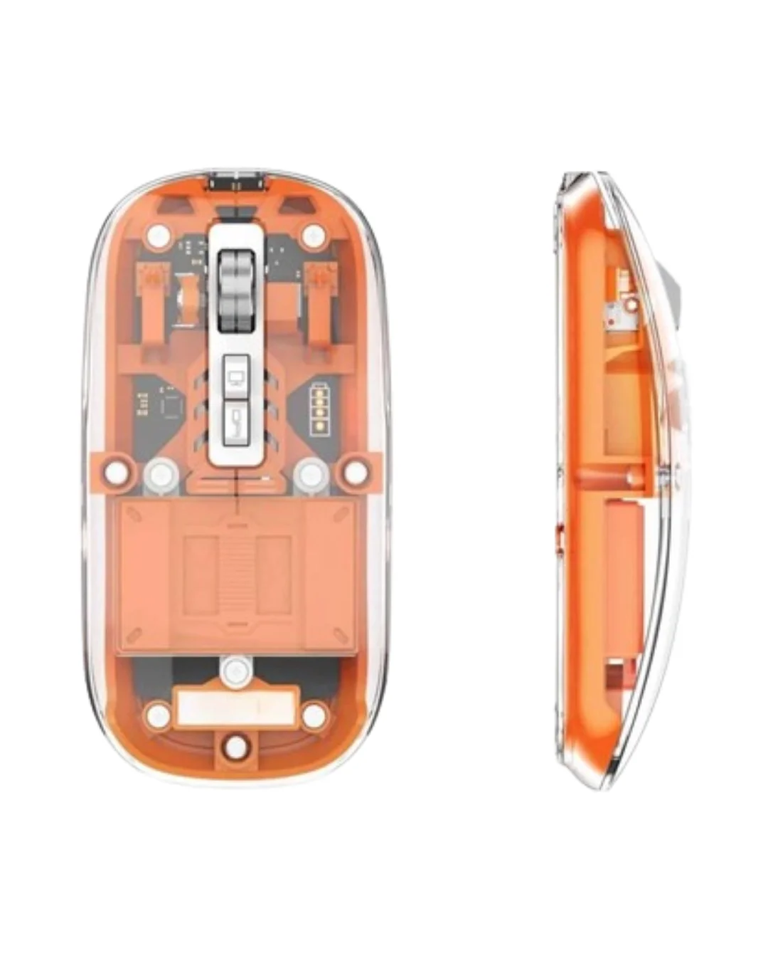 Bluetooth ve USB destekli kablosuz mouse, sessiz çalışma deneyimi sunmak üzere tasarlanmıştır. Sessiz tıklama mekanizması, özellikle ortak alanlarda çalışan kullanıcılar için büyük avantaj sağlar. Şeffaf tasarımı, ürünü görsel olarak da öne çıkarır.Bluetooth bağlantısı sayesinde kablosuz ve düzenli bir çalışma alanı oluşturur. Ergonomik yapısı, elin doğal hareketlerini destekleyerek uzun süreli kullanımlarda konfor sağlar. Bilgisayar ve tabletlerle uyumlu yapısı, farklı cihazlar arasında pratik geçiş imkânı sunar.Hafif ve kompakt tasarımı sayesinde kolay taşınır. Günlük işler, ofis çalışmaları ve ev kullanımı için ideal bir mouse çözümüdür.