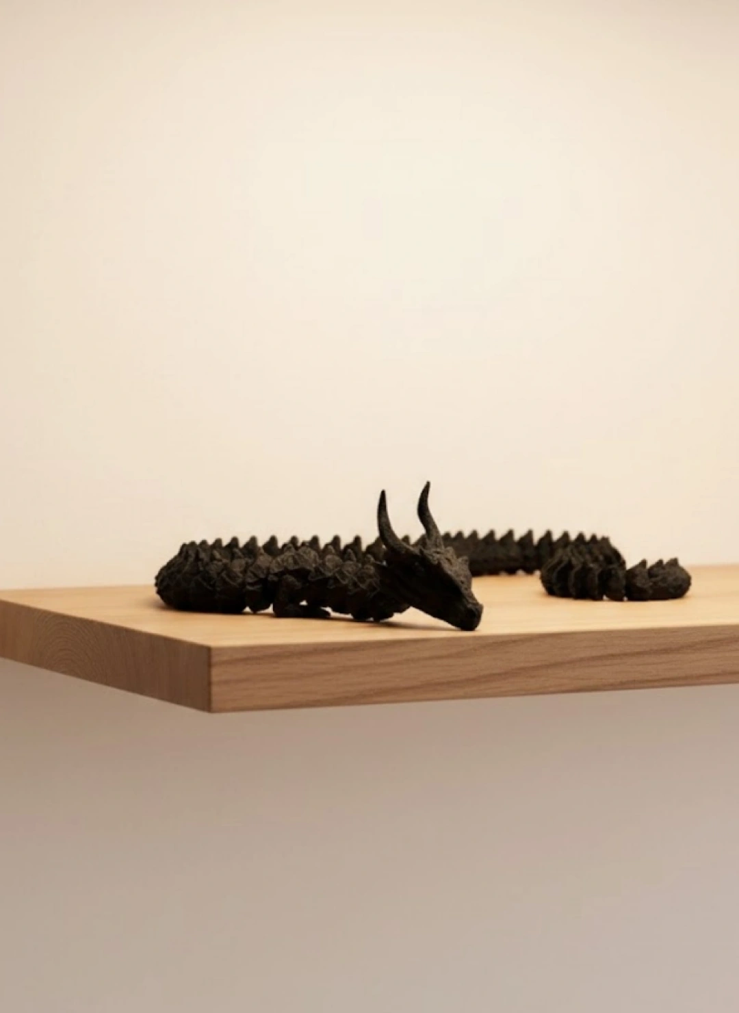 Siyah Hareketli Ejderha Figürü, fantastik dünyaların gücünü ve gizemini yaşam alanlarınıza taşıyan özel bir dekor ürünüdür. 60 cm uzunluğundaki esnek ve eklemli gövdesi sayesinde ejderha figürü farklı şekillerde konumlandırılabilir ve bulunduğu ortama hareket katar. Detaylı pullu yüzeyi ve baş tasarımı, ürüne gerçekçi ve etkileyici bir görünüm kazandırır.Bu ejderha figürü; masa üstü, raf, TV ünitesi veya vitrin dekorasyonu için oldukça uygundur. Siyah renkli tasarımı, modern ve karanlık temalı dekorasyonlarla mükemmel uyum sağlar. Fantastik figür koleksiyonları için güçlü ve dikkat çekici bir tamamlayıcıdır.Dayanıklı yapısı sayesinde uzun süre formunu korur. Hem dekoratif hem de koleksiyonluk olarak değerlendirilebilecek bu ürün, ejderha figürlerini sevenler için özel bir alternatiftir. Kendiniz için ya da fantastik temalara ilgi duyan sevdikleriniz için şık ve farklı bir hediye seçeneği sunar.