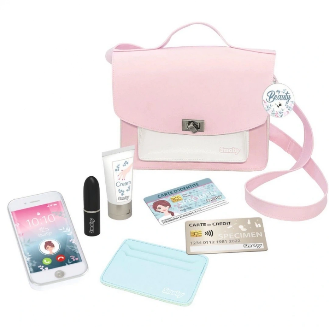 Smoby'den şimdi de My Beaut güzellik çantası Şık ve modaya uygun görünümü sayesindeküçük kızları baştan çıkaracak! Çantada 2 saklama bölmesi, bir döner kilit, bir anahtarlık, bir sap ve bir omuz askısı bulunmaktadır. Ürün içerisinde 6 adet oyuncak aksesuar bulunmaktadır: 1 adet mekanik ruj*, 1 adet el kremi*, 1 adet kartlık, 1 adet banka kartı, 1 adet kimlik kartı ve 1 adet telefon ( hepsi oyuncaktır ).