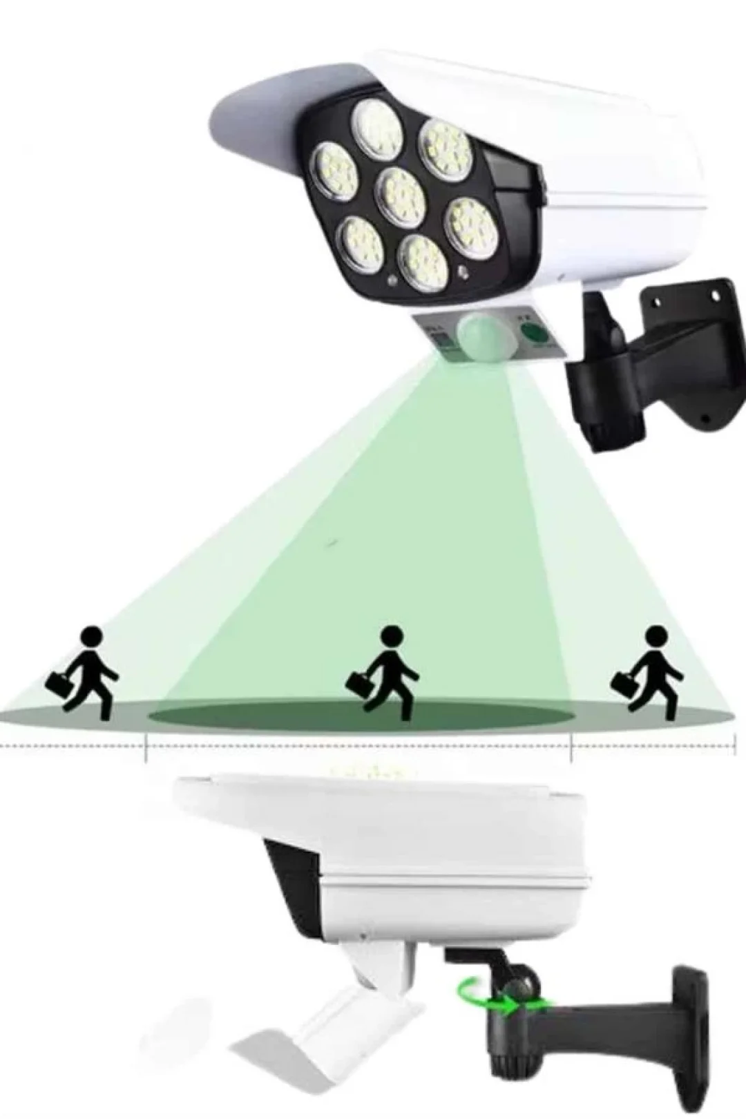 Bu güneş enerjili güvenlik ışığı, çevre dostu tasarımı ve pratik kullanımı ile hem güvenlik hem de dekoratif amaçlarla ideal bir çözümdür. Hem kamera görünüsü işlevi görerek, hırsızları caydırma etkisi yaratır hem de bahçeniz için güçlü bir aydınlatma sunar. Dahili PIR hareket sensörü, 10 ila 20 feet mesafede hareketi algılayarak gece boyunca ışığın otomatik olarak yanmasını sağlar. Bu özellik, evinizin etrafındaki alanları güvenli hale getirir. Güneş paneli, güneş ışığını emerek şarj olur ve ışığın enerji ihtiyacını karşılar, böylece elektrik tüketimi ve çevreye olan etkisi minimuma iner. Pil kapasitesiyle de, düşük ışık modunda bile yaklaşık 40 saate kadar çalışma süresi sunar. Kurulumu oldukça basittir ve güneş paneli ve ışık kaynağının yönü 5 eksenli rotasyon sayesinde rahatça ayarlanabilir, böylece istediğiniz alanı verimli bir şekilde aydınlatabilirsiniz. IP66 su geçirmezlik standardına sahip olması, ürünün yağmur, kar gibi dış hava koşullarında bile dayanıklı olmasını sağlar. Bu ışık, güvenlik ihtiyacınızı karşılamakla kalmaz, aynı zamanda dış mekanlarınızı şık bir şekilde aydınlatarak, bahçeniz, verandanız, garajınız ya da yol kenarlarınıza estetik bir görünüm kazandırır.