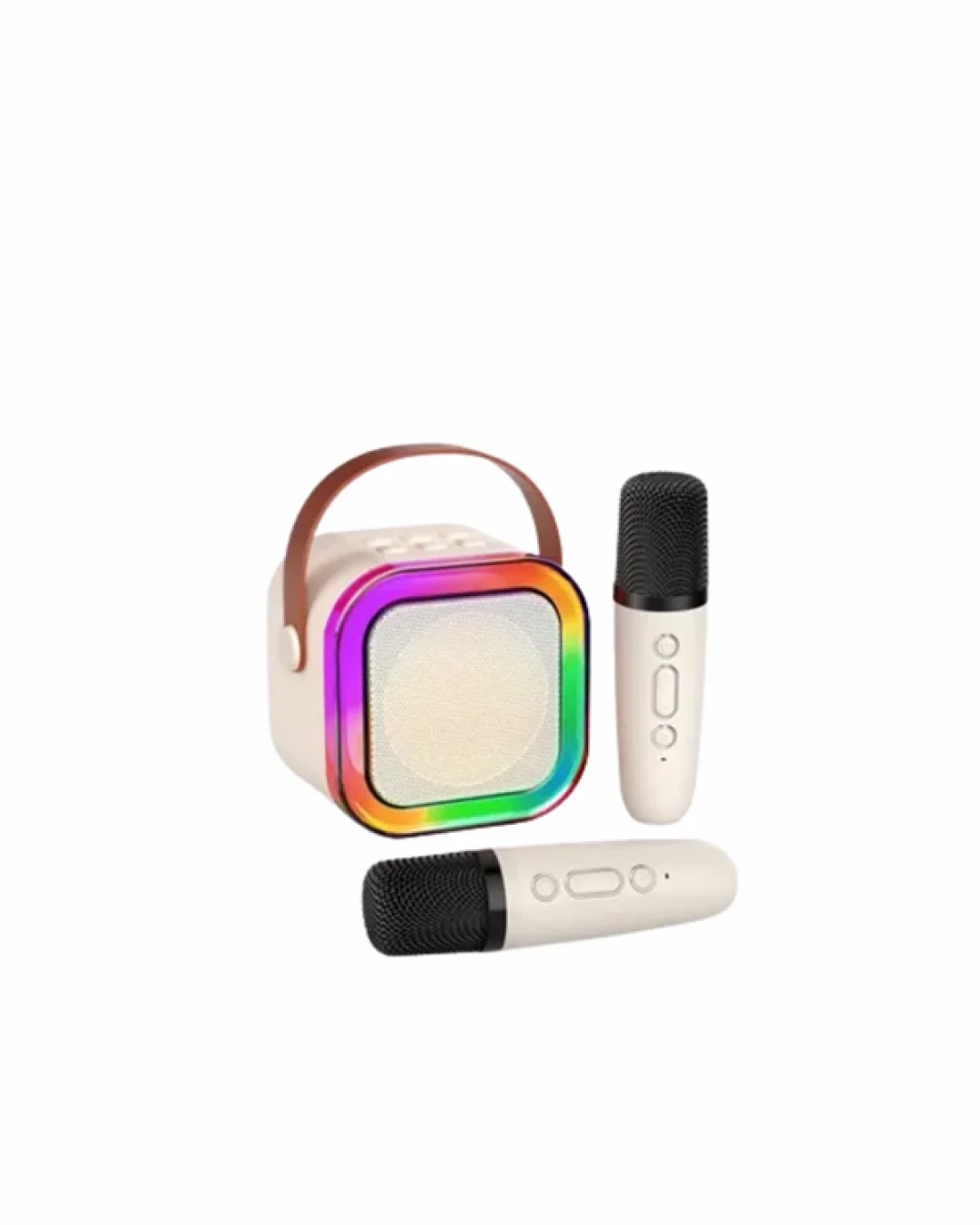 Kompakt yapısı ve zengin özellikleriyle bu mini karaoke cihazı, eğlencenizi her ortama taşıyor. Bluetooth bağlantısı sayesinde telefondan veya tabletten müzik açmak çok kolay. USB bellek, AUX kablo veya SD kart ile de kullanım mümkündür. İki kablosuz mikrofonla birlikte gelen ürün, aynı anda iki kişinin şarkı söylemesine olanak tanır. Mikrofonlardan birinde ses değiştirme özellikleri bulunur: çocuk, kadın, erkek, robot gibi seslerle farklı bir eğlence yaşarsınız. LED ışıklar müzikle birlikte yanar ve ritme ayak uydurur. Bu da özellikle çocuk partileri, doğum günleri ya da aile eğlenceleri için ürünü daha çekici hale getirir. 2400 mAh bataryasıyla tek şarjda 6-10 saat arası kesintisiz müzik keyfi sunar.
